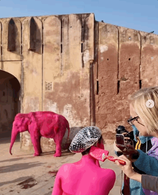 一位俄罗斯摄影师在印度拍摄时为出片,将一只65岁的母象和一位女性模特全身涂满了粉红色颜料。拍完没过多久,大象去世。饲养主解释其是自然老死,但许多印度网友无比愤怒,并对摄影师发出了死亡威胁...