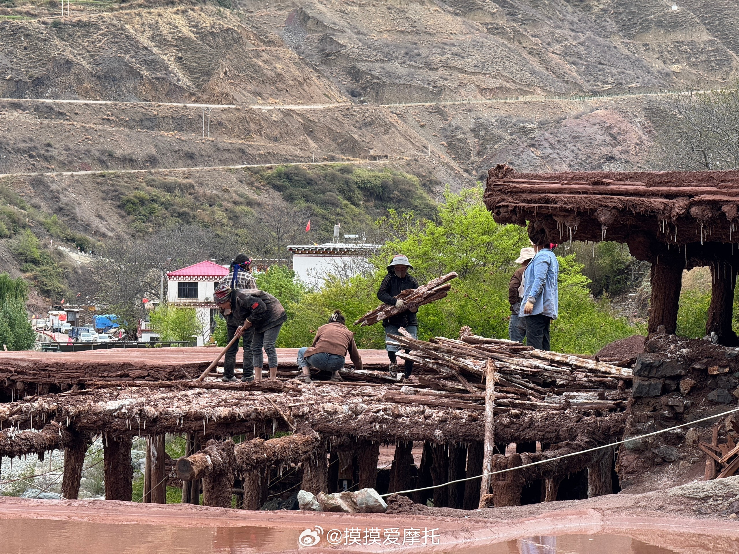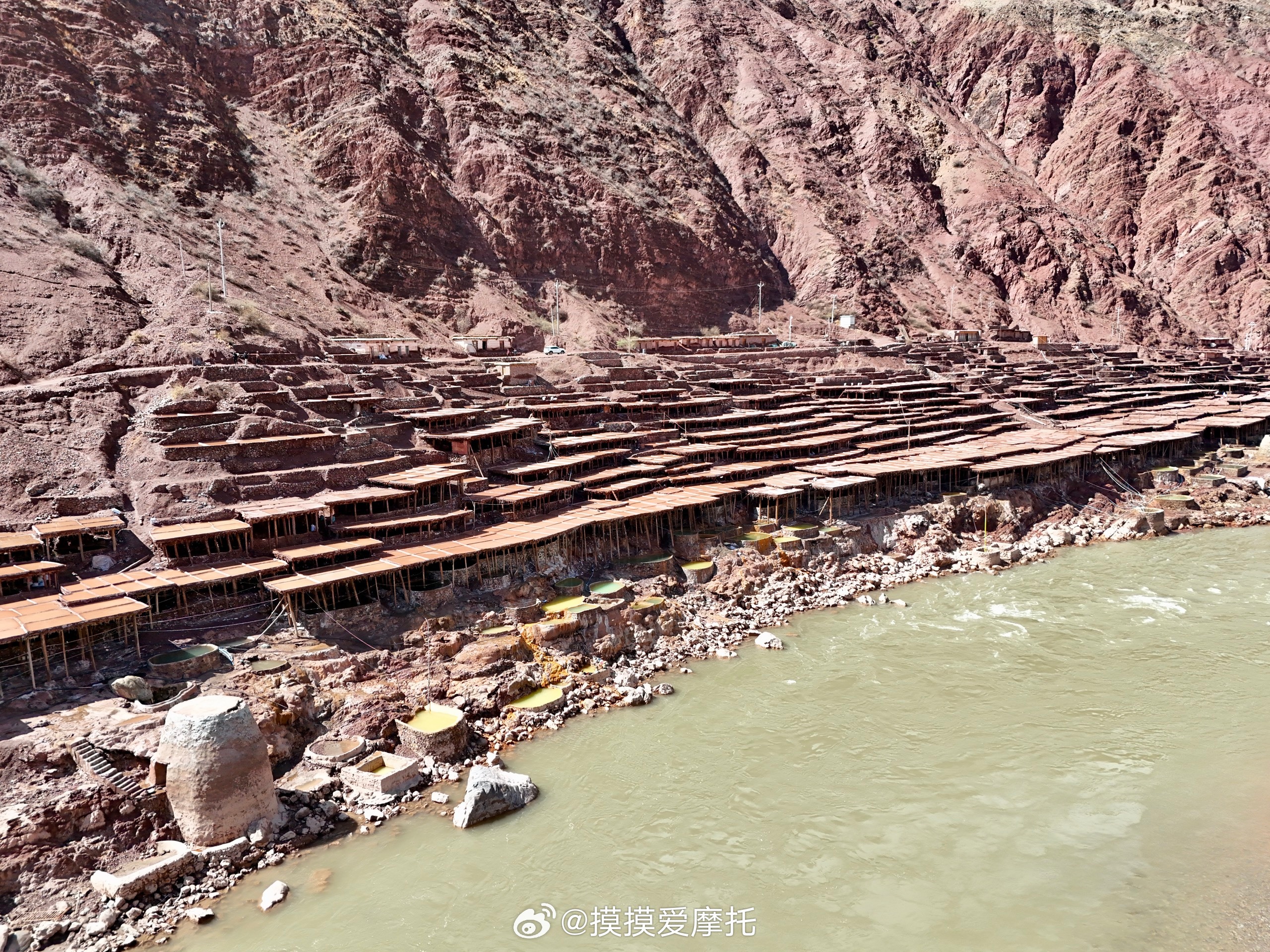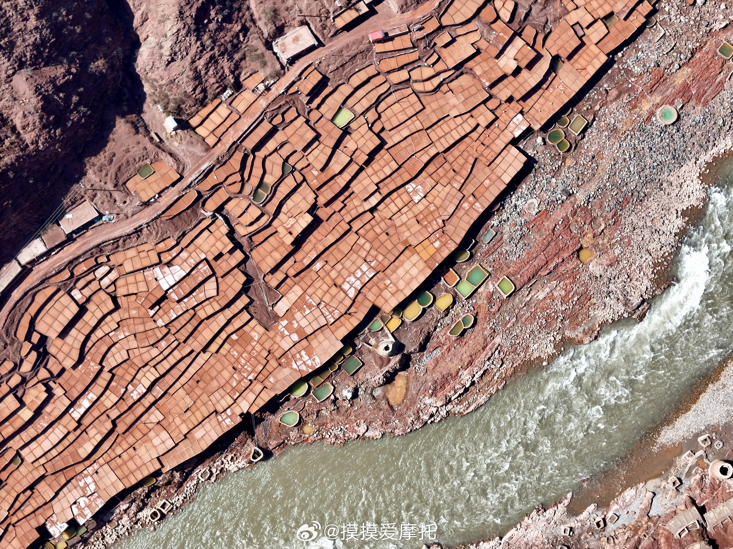 和摸摸去摩旅 芒康千年古盐田,拥有1300多年的历史,是中国唯一完整保留,原始手工晒盐技艺的地方,沿用最原始的 “架木为田,汲卤晒盐”古法。