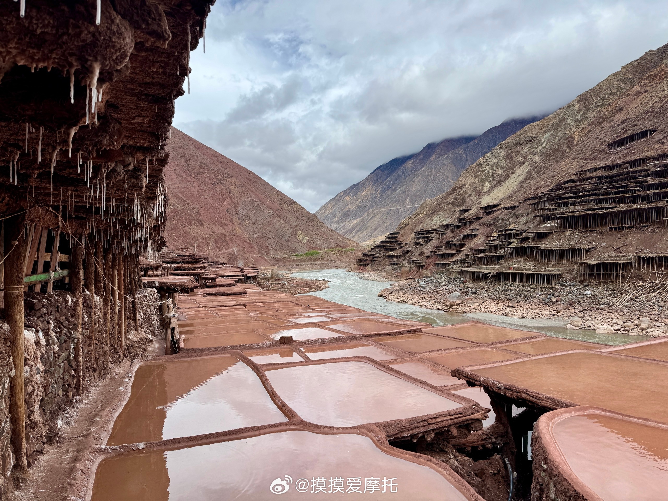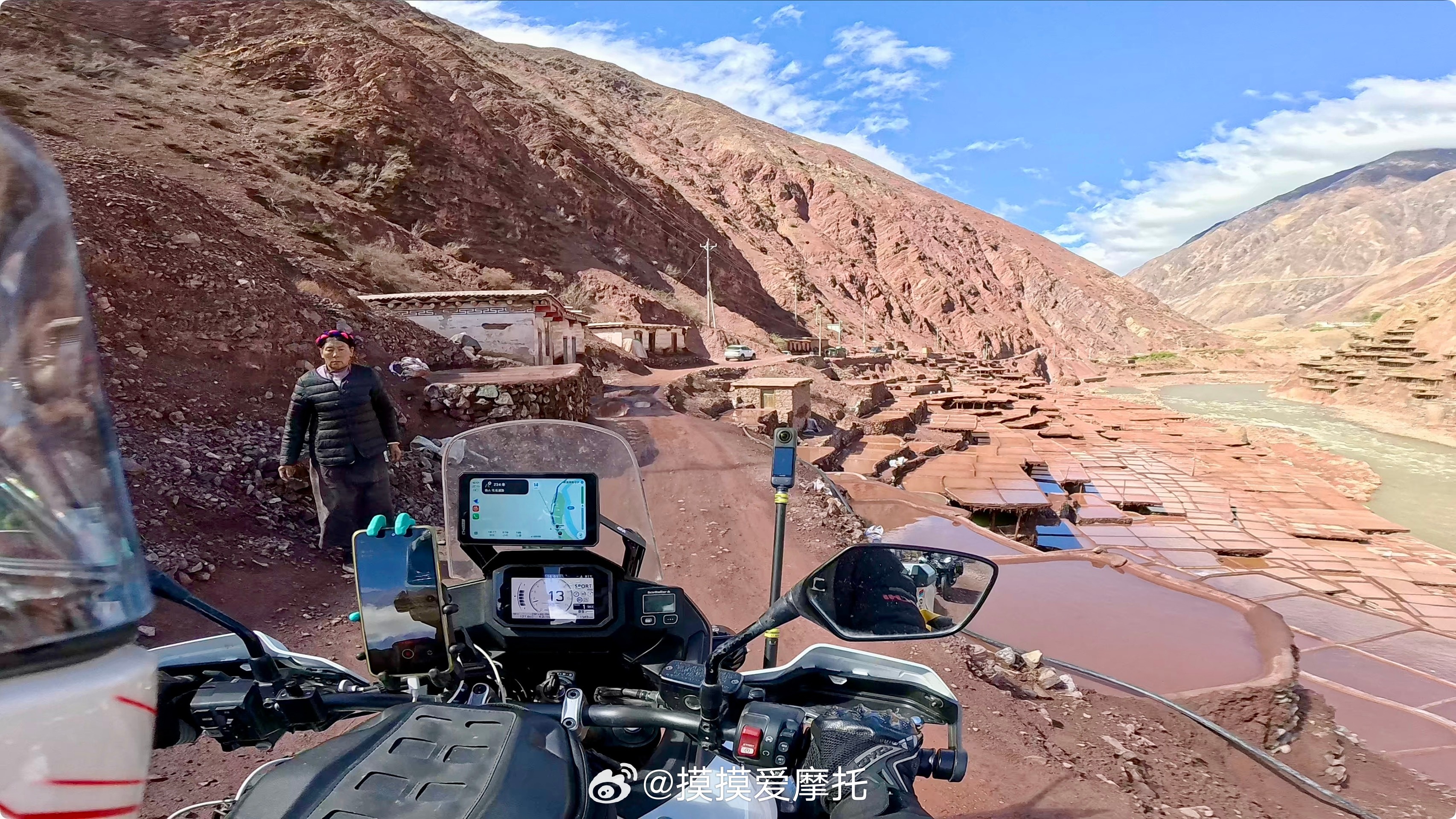 盐田依澜沧江陡坡而建,3400多块盐田层层叠叠如棋盘蔚为壮观,位置在芒康县纳西民族乡(加达村一带)的澜沧江两岸,值得你来打个卡!本田xl750机车摩托车摩旅 昌都·千年古盐田