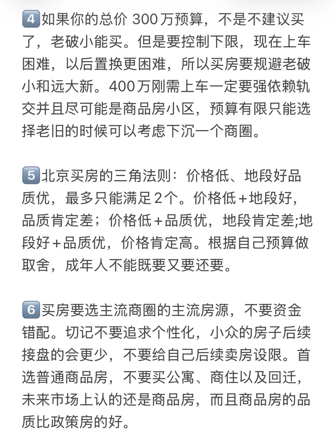 1️⃣北京买房三角法则:价格低+品质好+地段好,最多只能选两个。