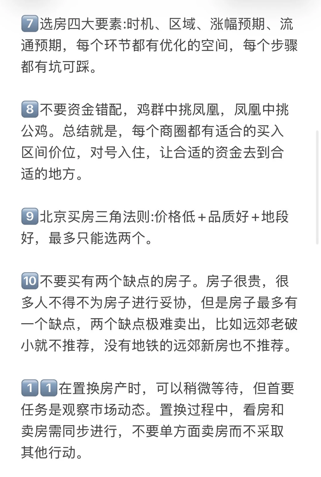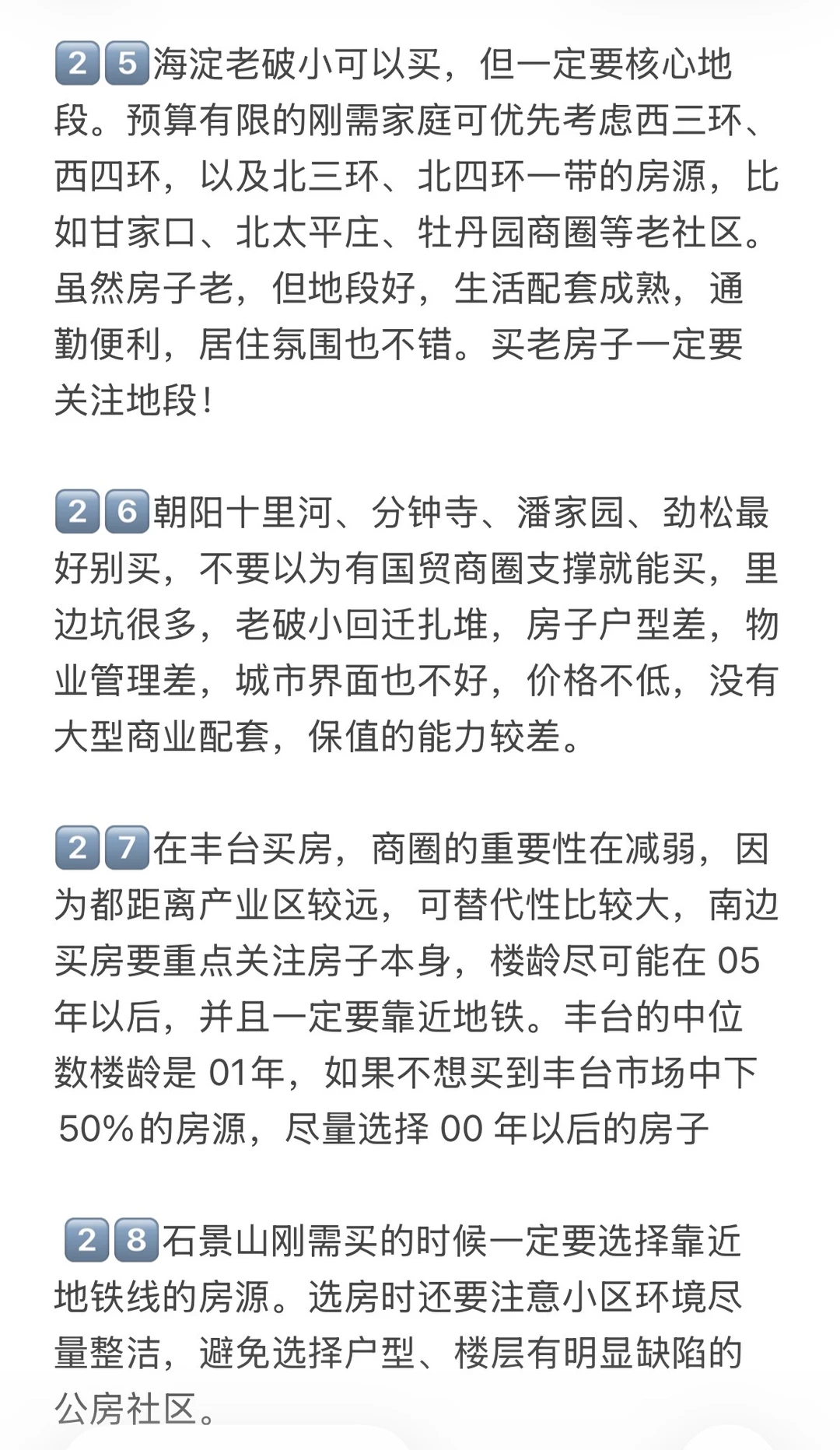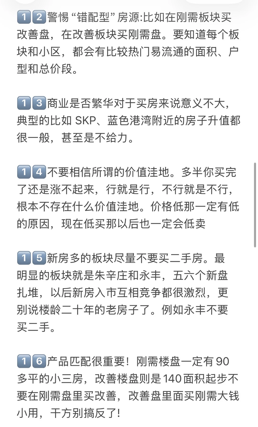8️⃣朝阳十里河、分钟寺、潘家园、劲松最好别买,不要以为有国贸商圈支撑就能买,里边坑很多,老破小回迁扎堆,房子户型差,物业管理差,城市界面也不好,价格不低,没有大型商业配套,保值的能力较差。