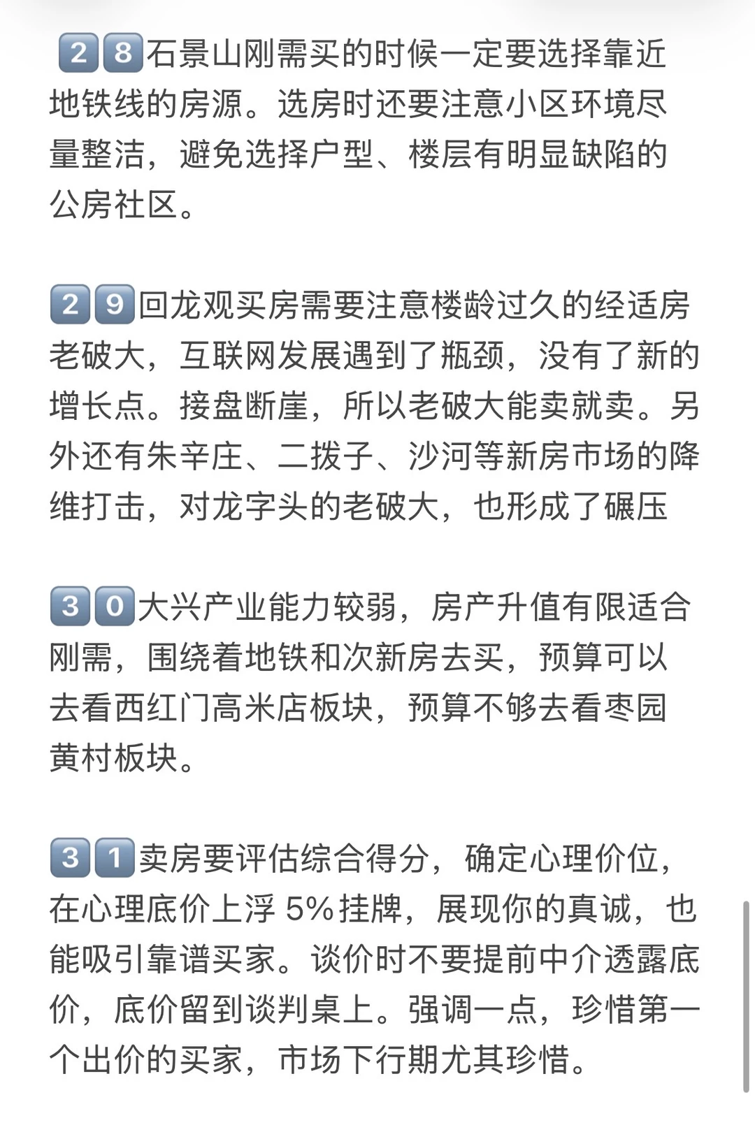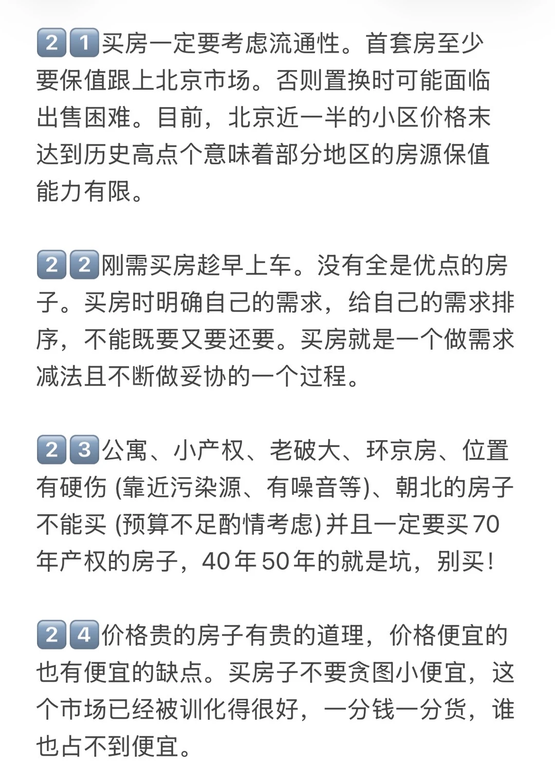 2️⃣不要买有两个缺点的房子。房子很贵,很多人不得不为房子进行妥协,但是房子最多有一个缺点,两个缺点极难卖出,比如远郊老破小就不推荐,没有地铁的远郊新房也不推荐。