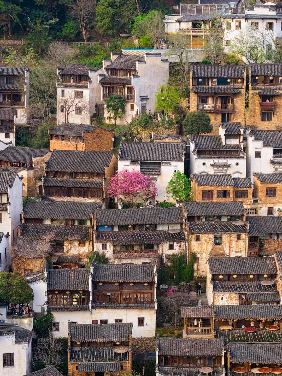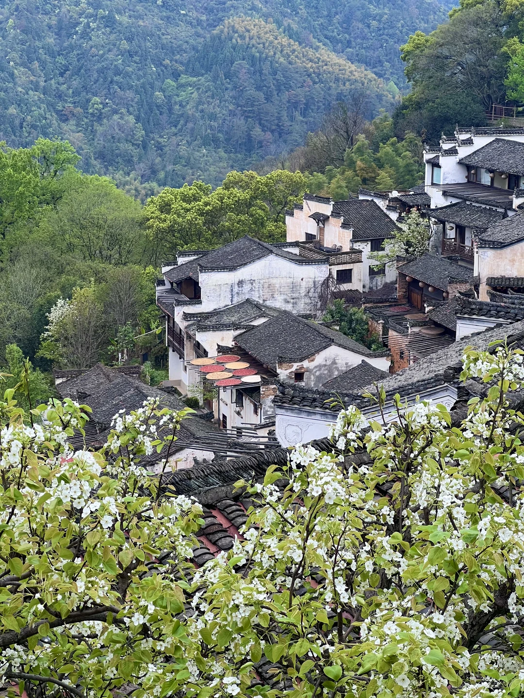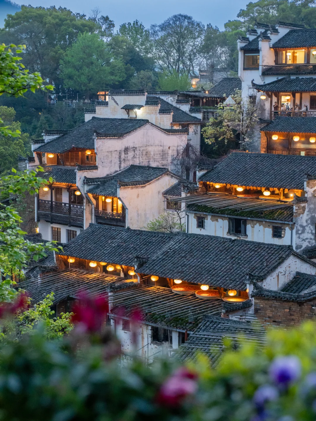 白墙黛瓦的徽派建筑依山而建,错落有致,宛如世外桃源。石板路两旁是古色古香的店铺,有各种徽州小吃、手作好物,边走边吃超惬意,还有爆米花、炒米片等儿时记忆