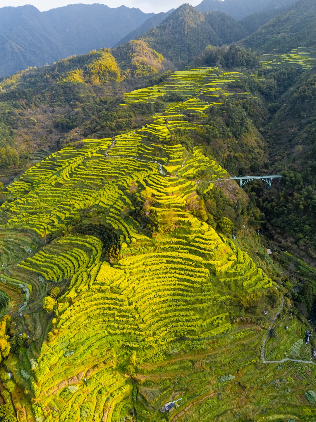金黄梯田油菜花海、漫山绚烂杜鹃、古朴徽派古村、清幽峡谷溪流,把春日的浪漫与治愈拉满