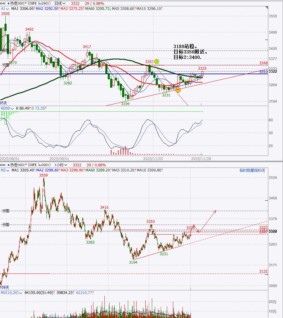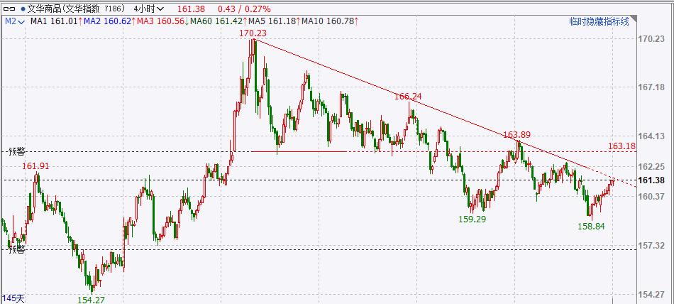 商品会去到之前的163附近这个压力位。现在的这个位置有点难,难的一点就是现在是在趋势线的压力位。