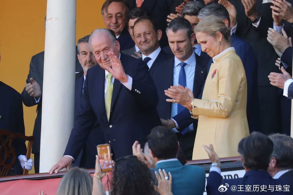 新闻 2026.4.5 西班牙国王胡安·卡洛斯时隔多年重返斗牛场,和长女伊莲娜公主一家在塞维利亚皇家斗牛场观看复活节斗牛比赛,老头感觉又支楞起来了。