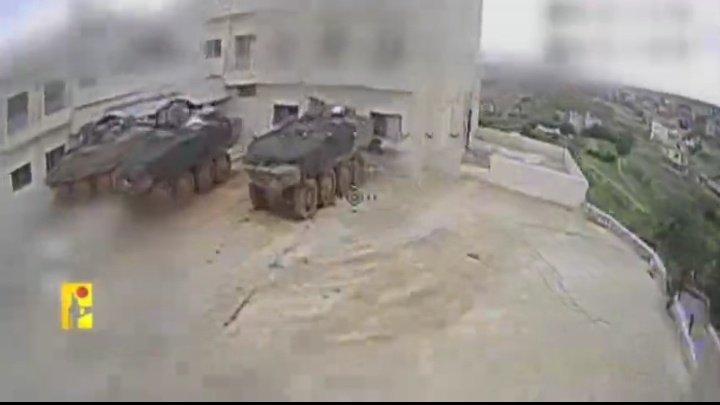 PressTV驻黎巴嫩南部的战地记者哈迪·霍泰特(Hadi Hoteit)发布了一段无人机拍摄的画面,声称真主党(Hezbollah)击中了两辆“埃坦”(Eitan)装甲战车和一辆“梅卡瓦”(Merkava)主战坦克;画面显示,这些车辆正停靠在建筑物旁或土路上,周遭弥漫着烟雾,并可见受攻击留下的痕迹。 并配以讽刺的口吻描述了此次袭击,称其仿佛是在给以色列的“纳梅拉”(Namera)战车开具“违停罚单”,并利用了车辆后门或舱盖处于开启状态的漏洞进行打击。它突显了真主党利用无人机执行反装甲作战任务的策略。