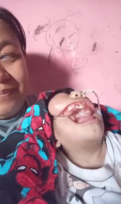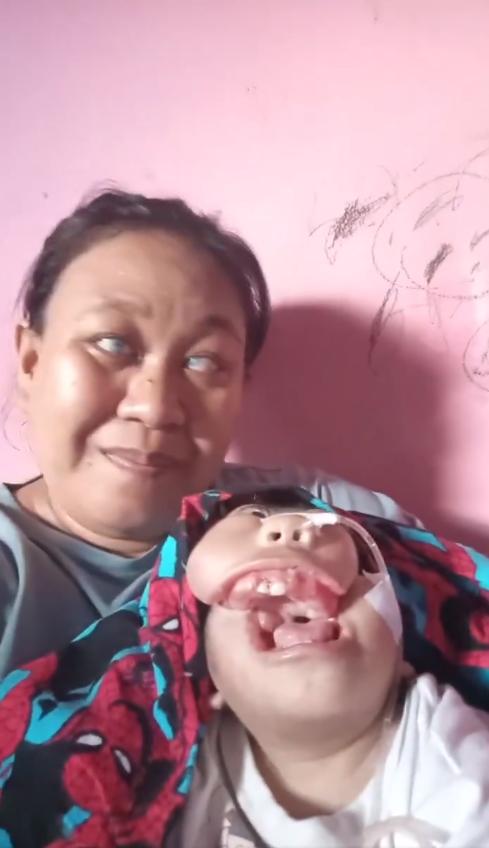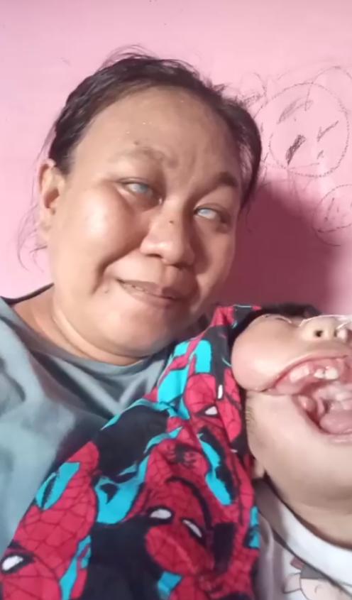 来自Bayrak Medya 的帖子视频中一位失明的印尼妇女白天打扫房屋,晚上还要工作,以养活她患有严重先天性残疾和医疗需求的孩子。 这位母亲患有严重的白内障,几乎失明。孩子脸部严重的畸形,画面中母亲抱着孩子,靠在粉红色的墙上与孩子说话的画面。尽管视力受损,她仍然面带微笑地看向镜头,脸上和身体上都有明显的缺陷。 在印度尼西亚,医院或非政府组织(例如与微笑列车或微笑行动相关的机构)的项目为有需要的家庭提供免费或低价的治疗方案。真希望这位母亲能得到当地医生或耳鼻喉科专家寻诊进行评估。