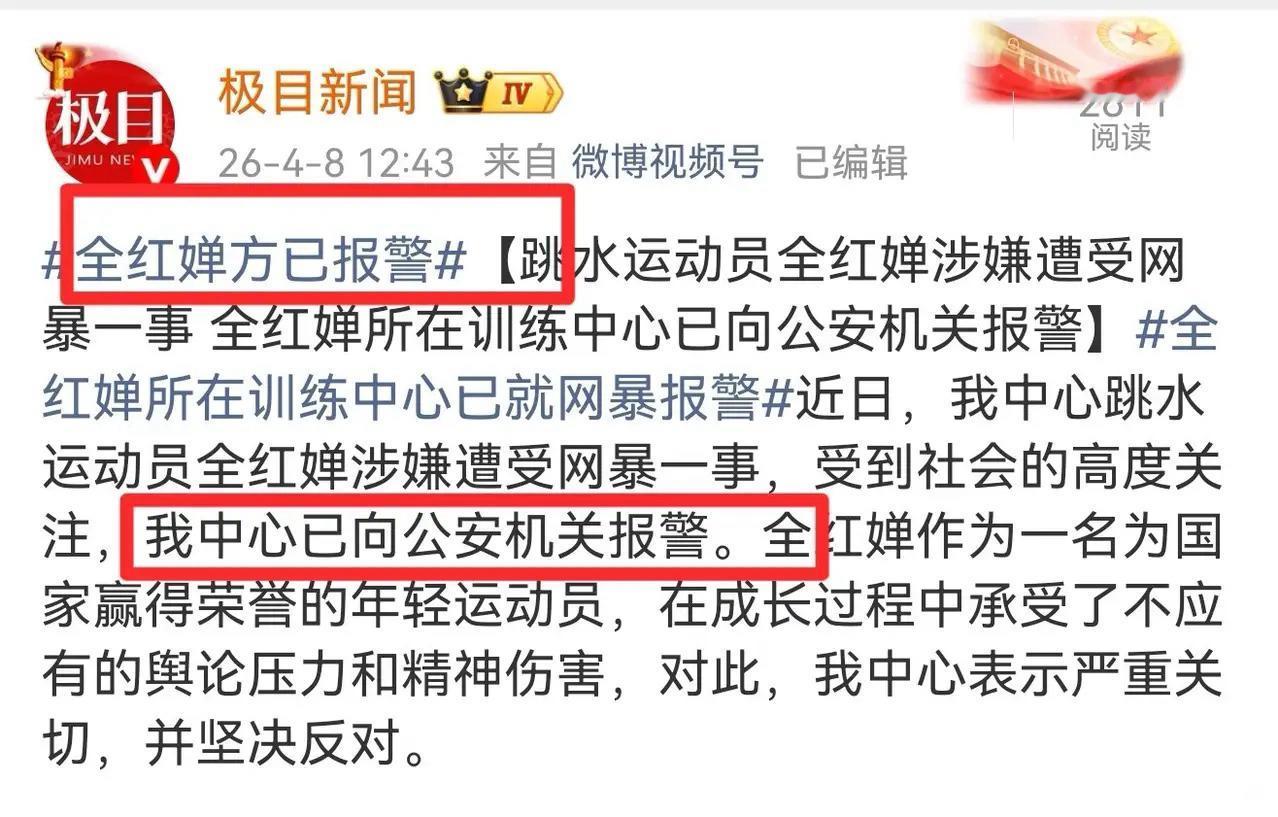 忍了又忍,全红婵这边终于不再退让! 4月8日,广东省二沙体育训练中心直接发布声明报警,彻底和网暴者撕破脸,这波反击看得人太解气。 十几岁的全红婵,把所有精力都放在跳水训练上,一次次跳出满分成绩,用汗水为祖国拿下无数荣誉。 可偏偏有人躲在屏幕后,恶意造谣、人身攻击,甚至把矛头对准她的家人,给这个本该专心追梦的孩子,带来了巨大的精神压力。 别再说什么运动员要扛住舆论,网暴从来不是几句闲话,而是突破道德和法律底线的恶意伤害。 体育赛场拼的是实力,不该被畸形饭圈文化裹挟,运动员更不是任人诋毁、消费的工具。 这次官方报警,不只是为全红婵撑腰,更是对所有网暴者的严厉警告。为国争光的少年,理应被温柔守护,而不是承受莫须有的谩骂。 真心希望法律能严惩网暴者,还全红婵一片清净,让她能安心训练,继续在赛场绽放光芒。 对于这件事,大家支持全红婵硬刚网暴吗?
