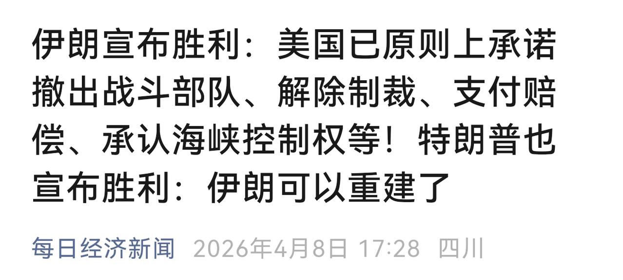 种种事实足以证明,美国早已无力将这场战争继续下去。如今为了尽快摆脱战争泥潭,美方哪怕付出代价,也不得不接受和谈的结果。从相关内容能看到,伊朗的10条诉求与美国此前提出的15条要求,核心内容完全背道而驰。可令人意外的是,美国直接放弃了自己主张的15条,转而以伊朗的10条方案为基础,开启为期两周的和谈,更有消息透露,美国甚至打算以基金形式,满足伊朗提出的战争赔偿诉求。