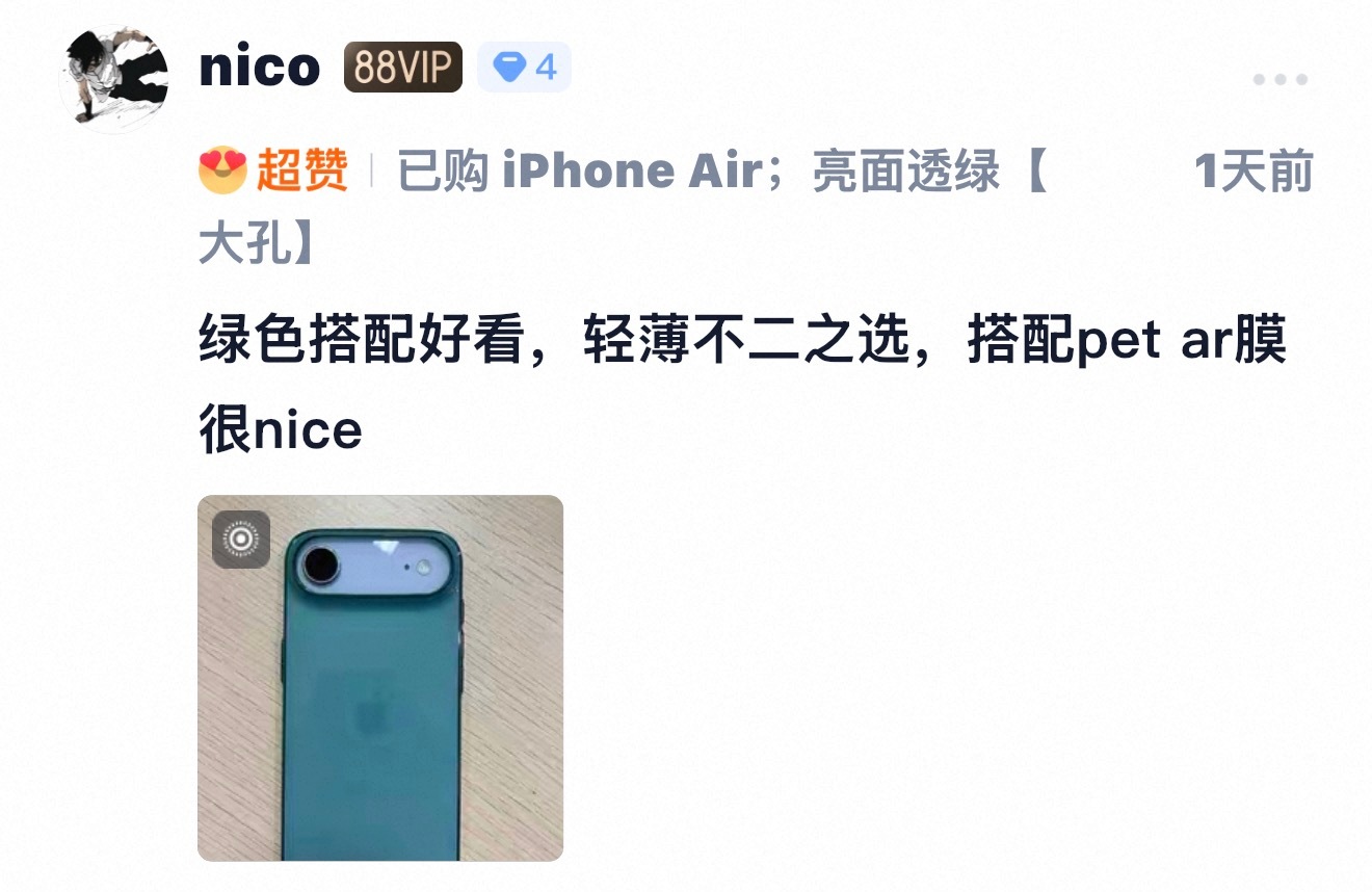 新上的 Air 超薄亮面透紫和透绿这颜色还挺特别哦,晶莹亮丽,手感又挺温润。有大
