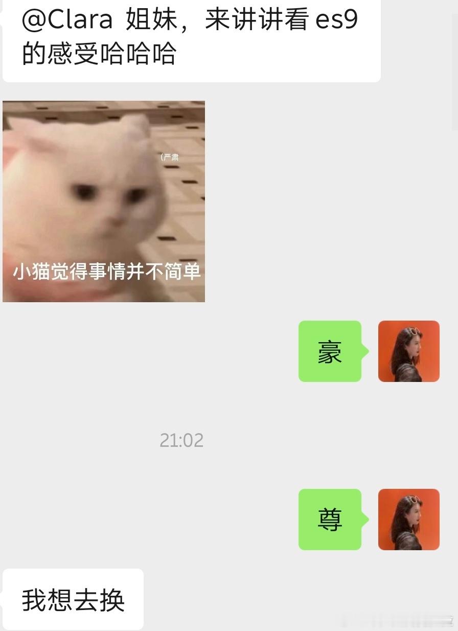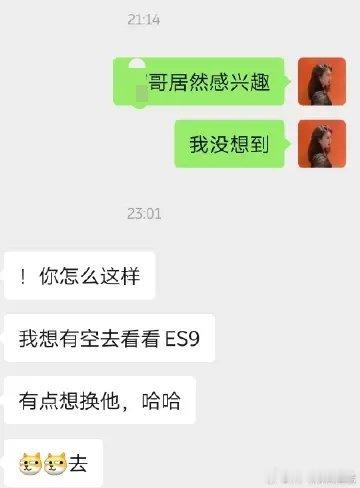 第一位朋友是早上,我大概九十点钟发了 ES9,我在棚拍拍摄的照片,然后来问我的这一位朋友,是我在牙克石出差的时候,去他们家的门店里面买了牙克石当地的特产。然后老板主业从事的是当地的羊肉批发,属于那种品质很好的羊肉 可以发全国的那种。然后老板问我说 这车价格有没有 70 万,同时也问了我照片里面放出来的这个车是不是顶配。图三哈 我给大家放出来,然后我用绿色的圈圈圈了一下我跟他的这个对话。我仔细看了一下 才发现他问我的是七十几。所以他的日期里面,我发图的这个地平线版本的顶配,他觉得七十几万是值的。