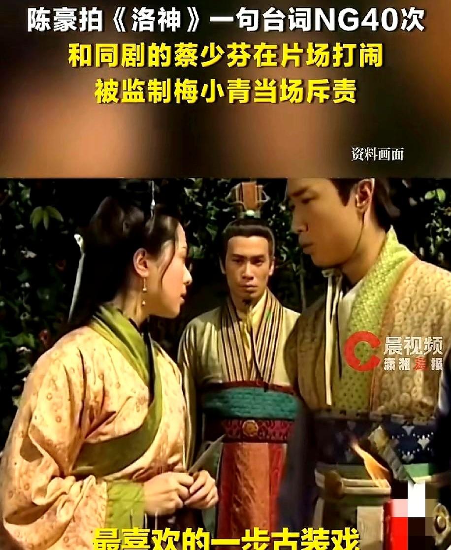 陈豪最近在节目里自曝,当年拍《洛神》演曹丕,古文台词简直要他命!他说,每句对白都NG三四十次,有时念不顺,有时情绪不对,甚至被监制梅小青当场吼:“你还玩?你给我把台词念好!”