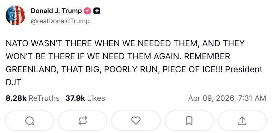 欧洲估计要疯了。 美国刚刚跟伊朗,达成暂时停火,川普就把注意力转移到了格陵兰岛