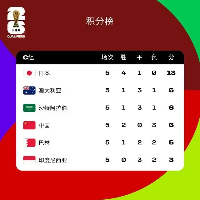 世预赛亚洲区18强赛第6轮比赛即将打响。数据网站通过大数据预测了各支球队的最终小组排名。根据预测,国足最终排名为小组前2,直接晋级世界杯概率为6%,小组第3、第4阶段的概率为50%,排名小组后两位被淘汰的概率是44%。同组其他球队中,日本队直接晋级世界杯的概率为99.99%,澳大利亚为67%,沙特为23%,巴林为4%,印尼为0.5%。