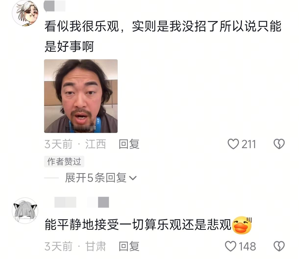 乐观主义者原来我是没招主义啊还以为是乐观呢。