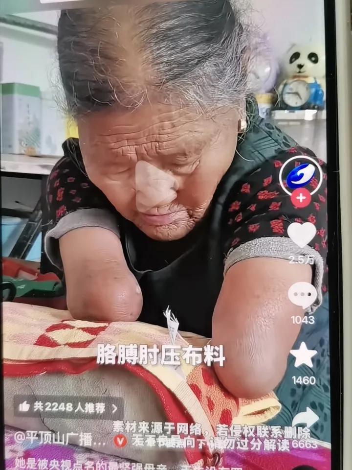 如今年过六旬的她,脸上刻满了岁月的痕迹,仍不愿麻烦孩子,用腋窝夹着筷子吃饭,抢着帮儿子做家务!