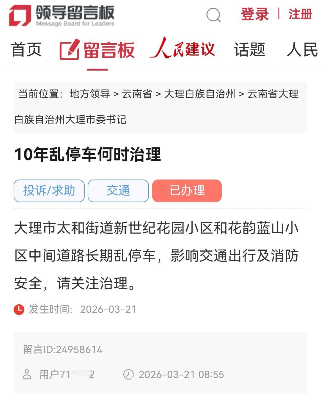 📍✍▶️近日网民在领导留言板给大理市委书记的留言