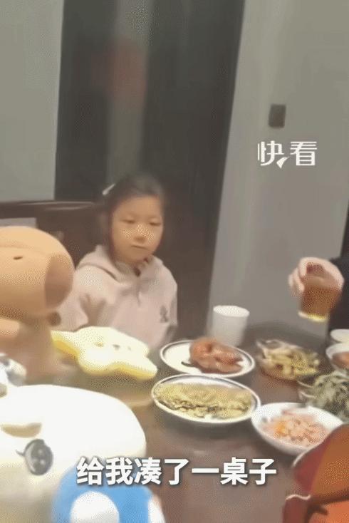 她灵机一动,把自己攒了好久的“宝贝们”全都翻了出来,把自己小小的“朋友圈”彻底动用起来,给爸爸凑出了一桌热热闹闹的“宾客”。