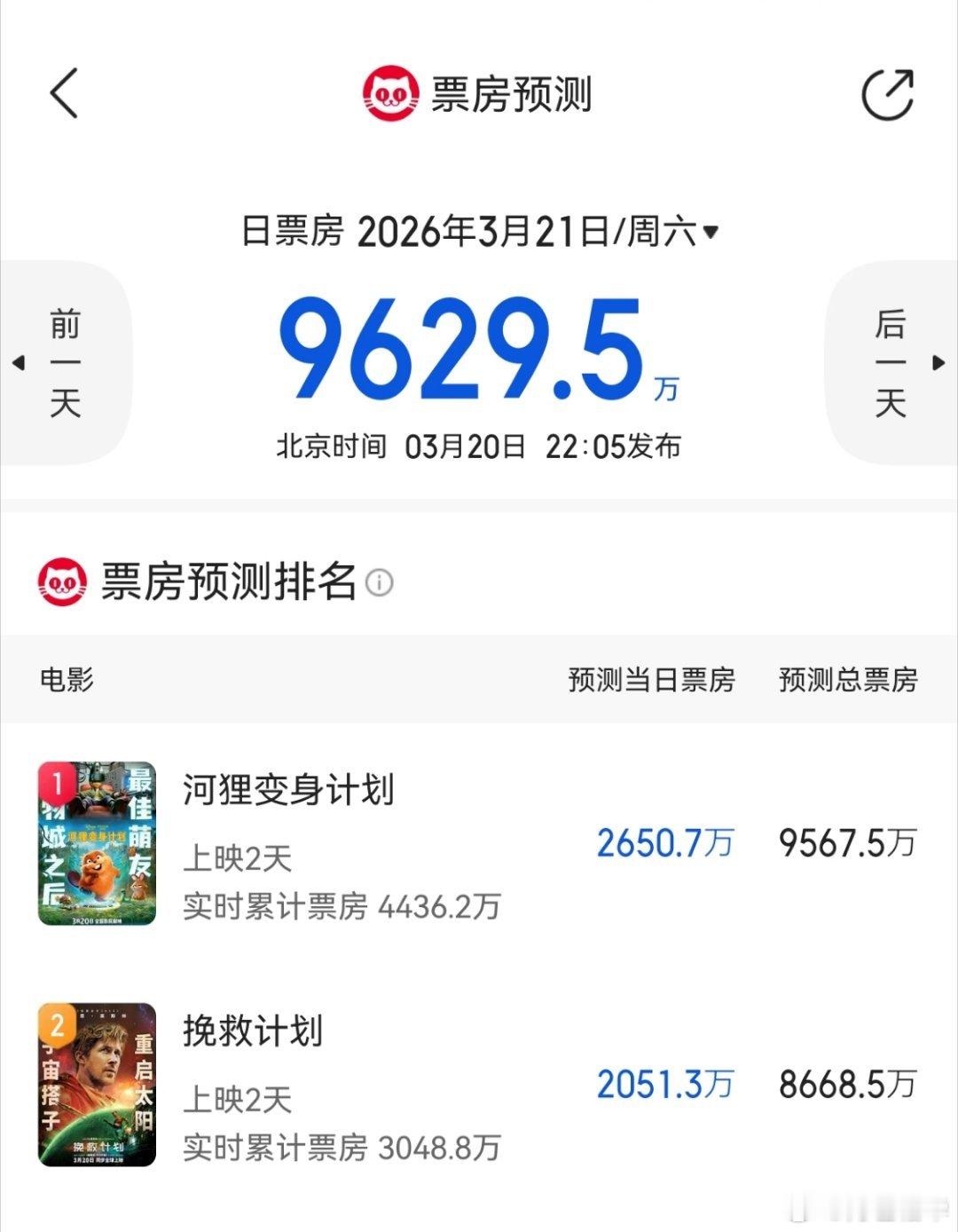 我去看《挽救计划》那天3月21日,票房预计才8668万,看完我该夸就是夸,现在都