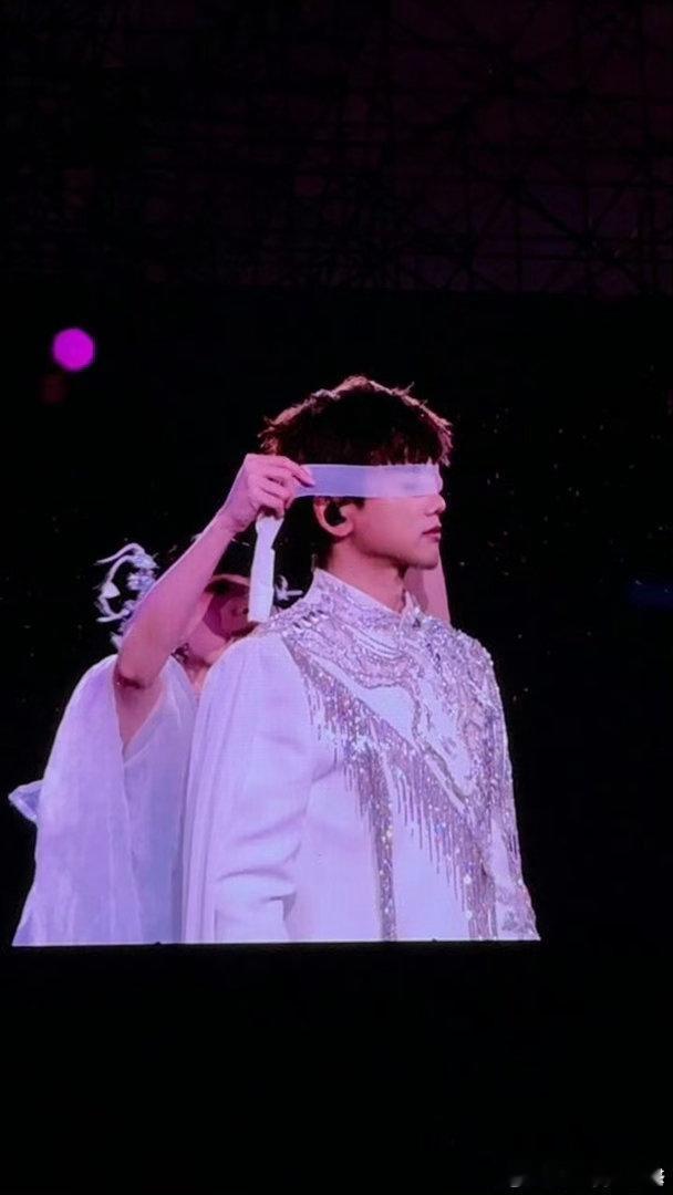 张杰这下不敢睁开眼了 张杰唱着唱着发现不对劲,伴舞的眼罩变发箍了。自己动手往下拽