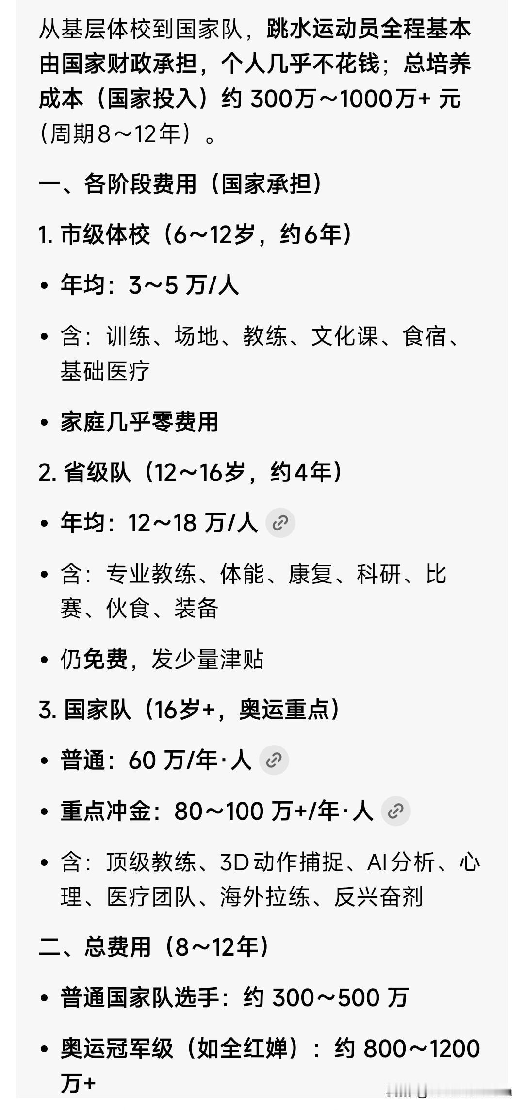 我们国家培养一个能走上奥运会赛场运动员需要几百万上千万费用。值得吗?