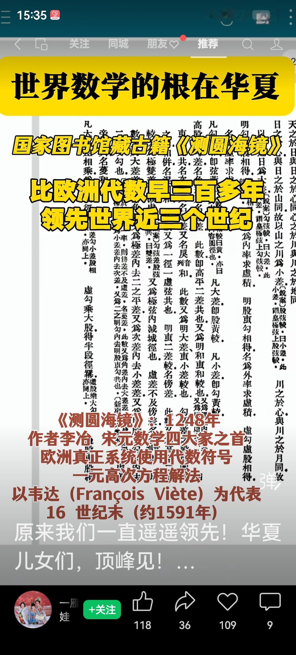 中华几千年历史古籍浩如烟海,没有人可以通读。数学家丘成桐说,中国古代没有数学,只有算术(引自今日头条)。但真实的历史和他说的完全不一样(图)