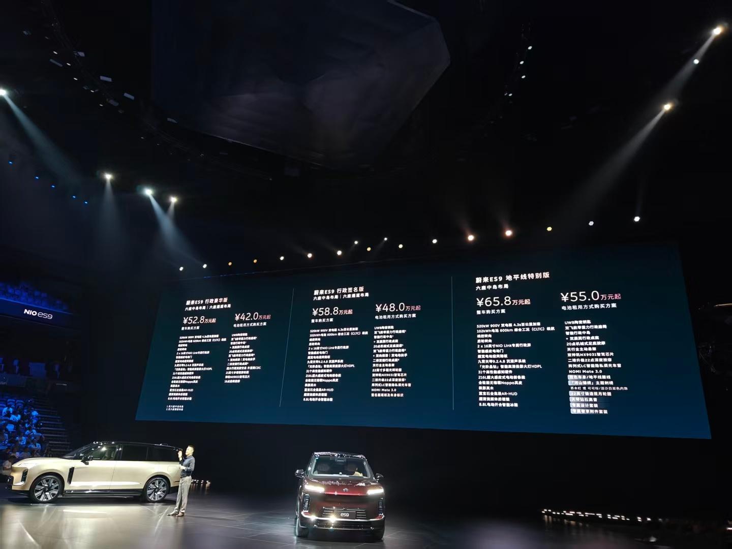 租电42万起,整车52.8万起,蔚来ES9正式公布预售价。