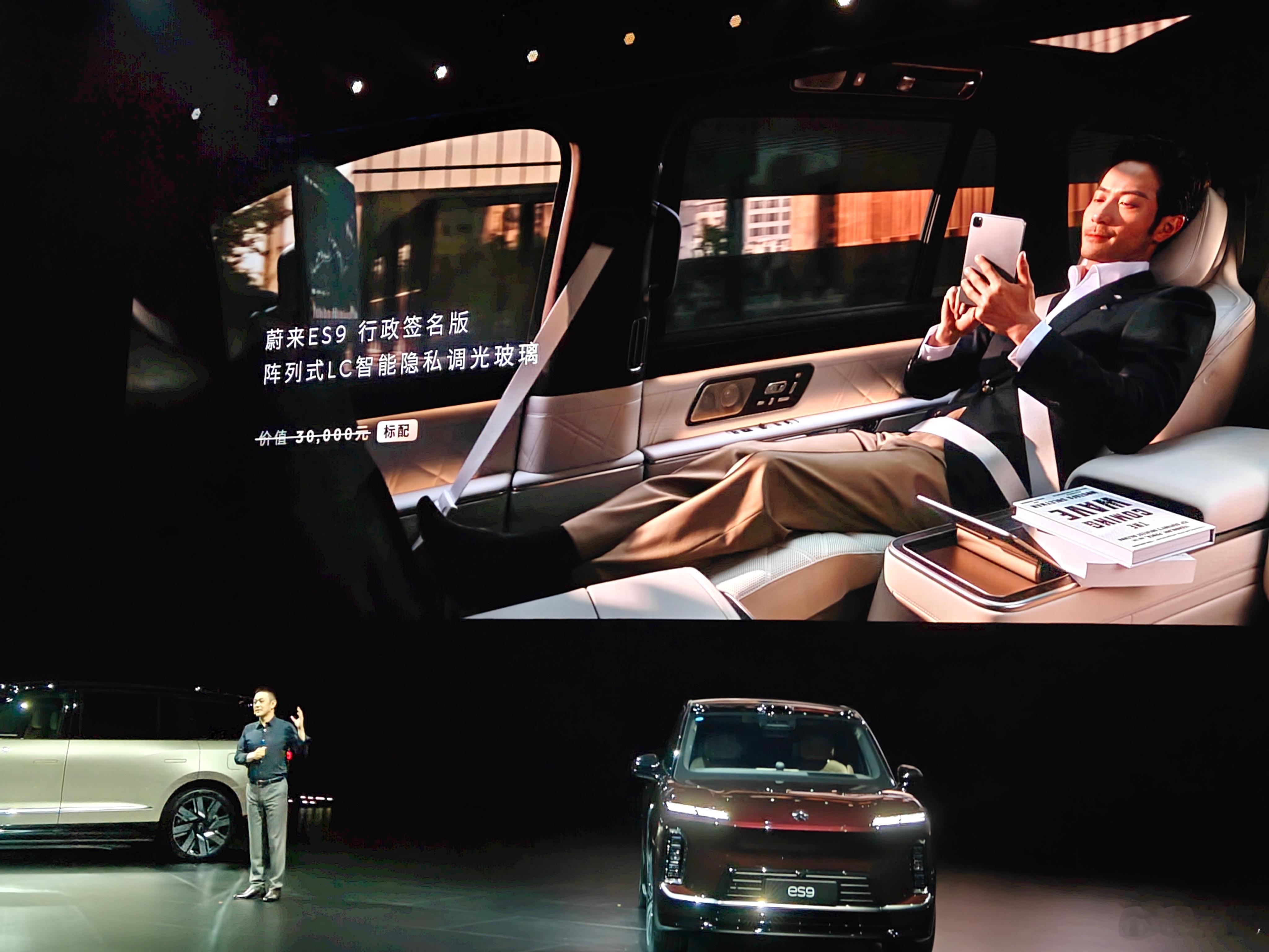 9和8之间差的不只是尺寸,还有场景,ES9会在满足家用的基础上,往商务出行接待多倾斜一些,用上了很多小心思,比如能快速调光的隐私玻璃,比如中排两张座椅的平权理念,再比如眼花缭乱的迎宾灯光等等,就是想打造一个极致豪华的会客厅。