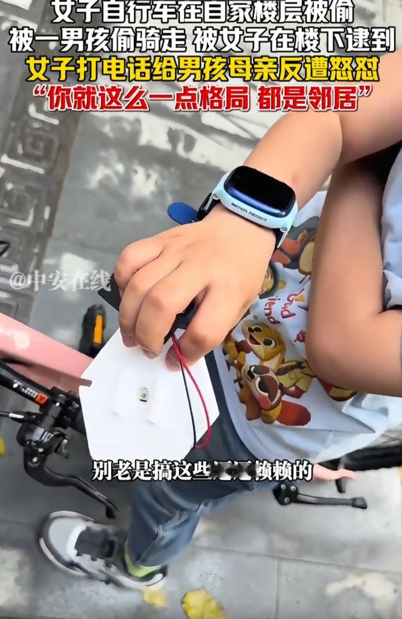万万没想到!广东,女子发现自己放在楼层的自行车被一名男孩给骑走了,女子拦住对方,要求孩子家长给个说法,本想着道个歉说说软话就算了,谁知对方家长态度嚣张,怒斥女子不要逼逼赖赖,哪怕报警后要通报到孩子学校,家长依然不认错