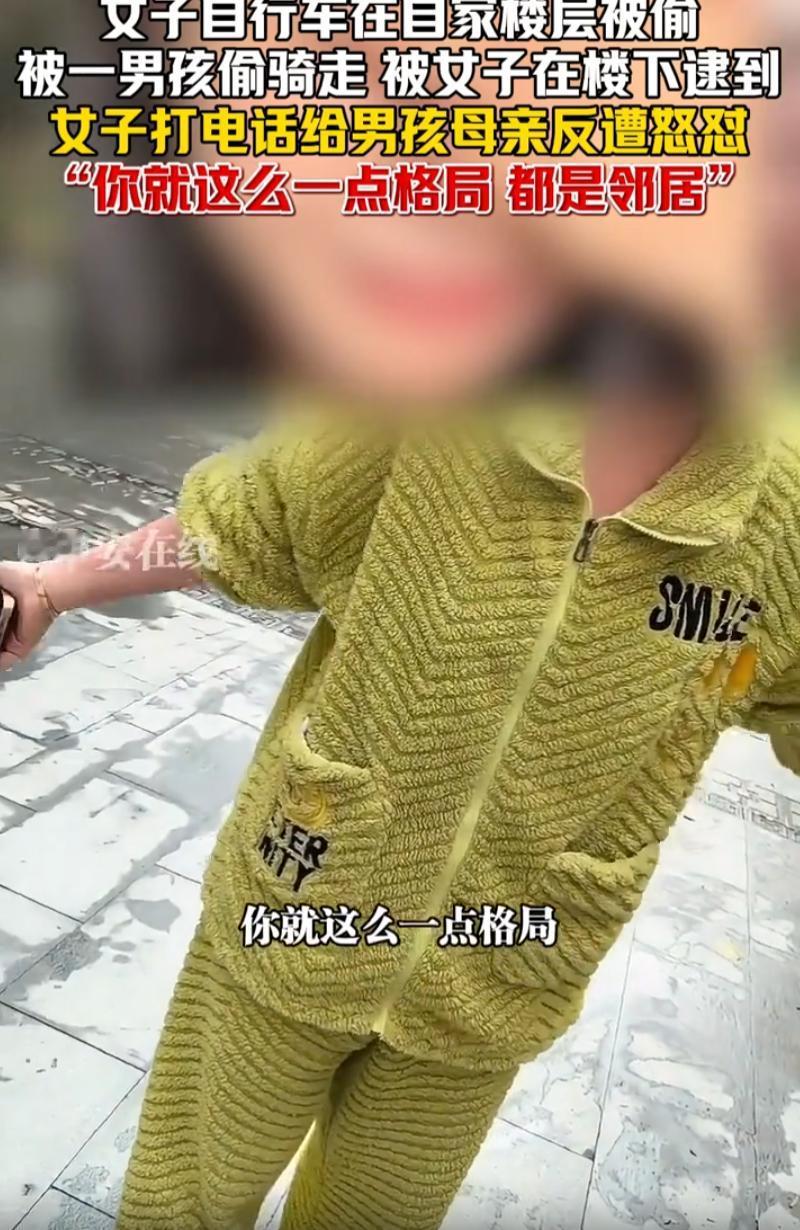 万万没想到!广东,女子发现自己放在楼层的自行车被一名男孩给骑走了,女子拦住对方,