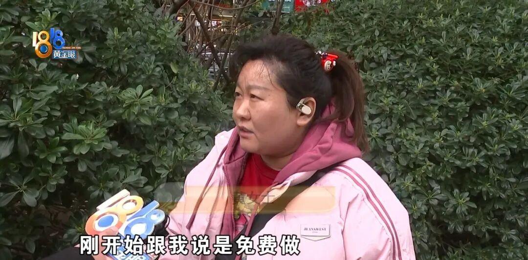 黄女士一进小房间,店员就开始了狂轰滥炸式的推销。等所谓的“免费项目”一做完,店员立刻翻脸说这钱必须得付。