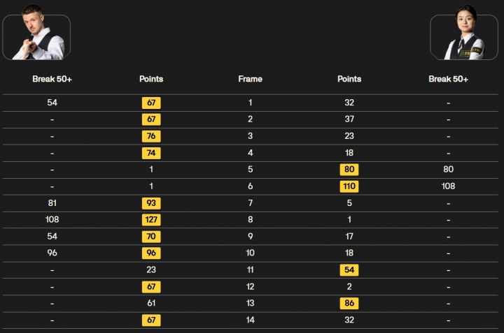 霍尔特轰出一杆108分破百,外加四杆50+(54、81、54、96);白雨露则打出一杆108分破百和一杆80分。