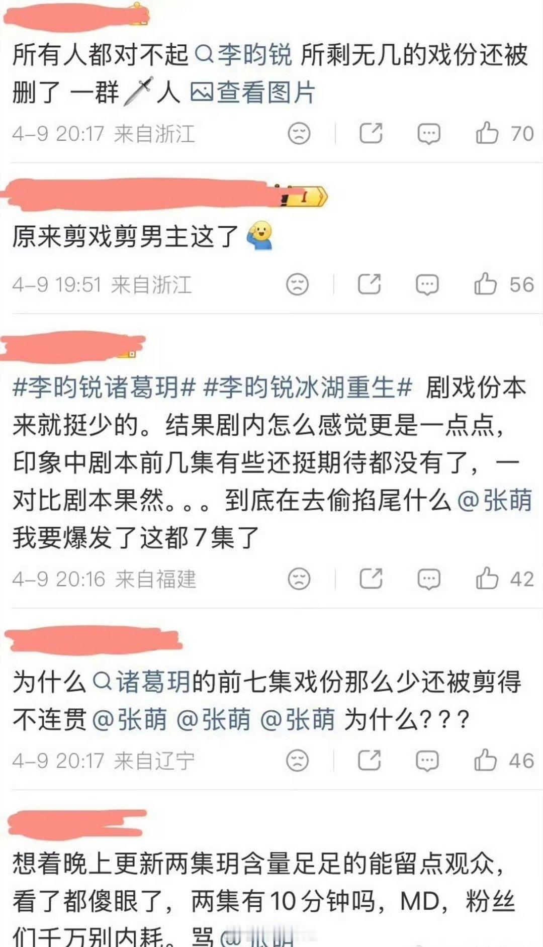 有网友汇总了一下李昀锐在《冰湖重生》里面的戏份,好像不仅看起来戏份少的非常明显啊,还被剪的很不连贯