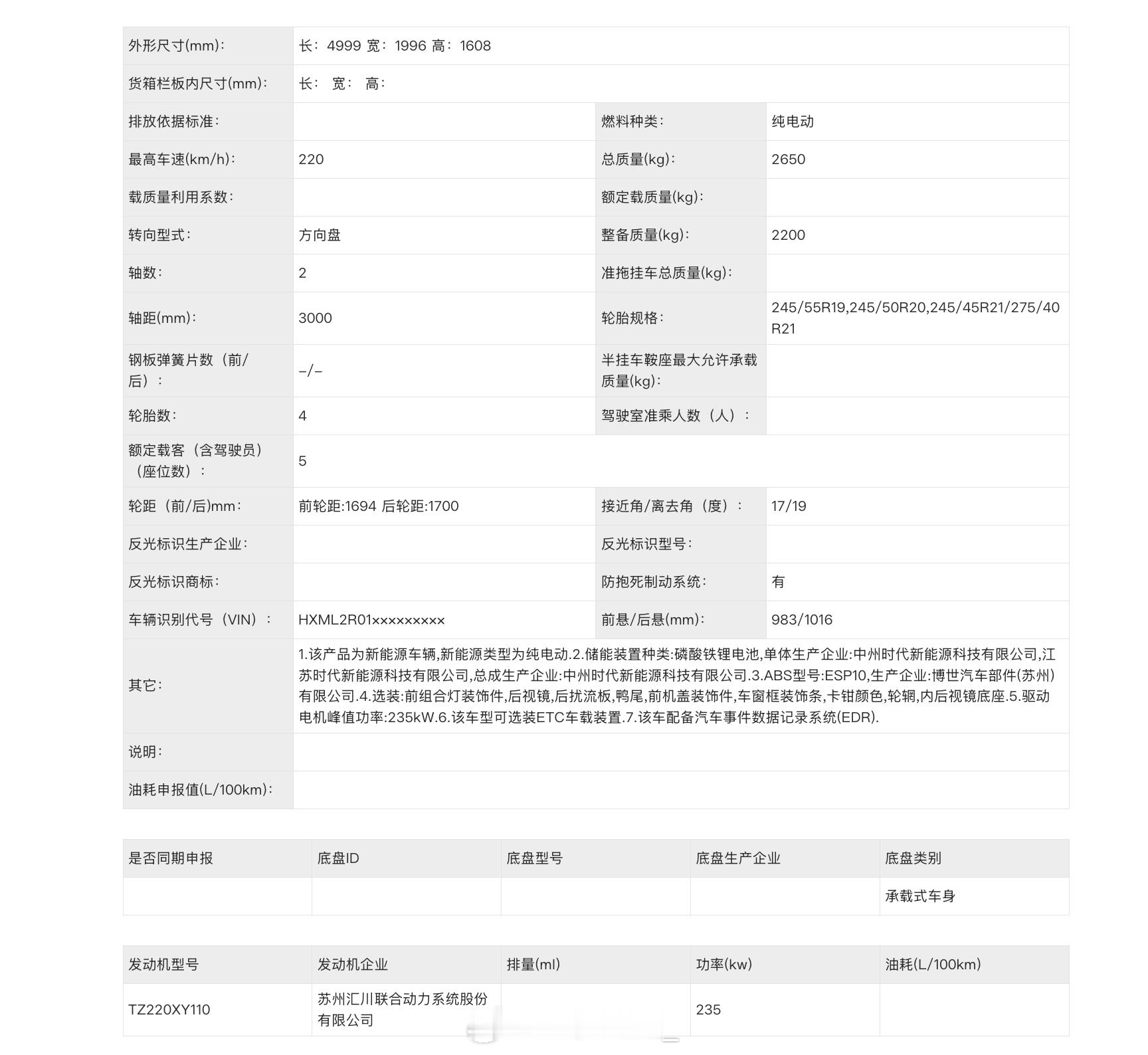 这次新版型尺寸没有任何变化,采用单电机方案,后驱单电机235kW。