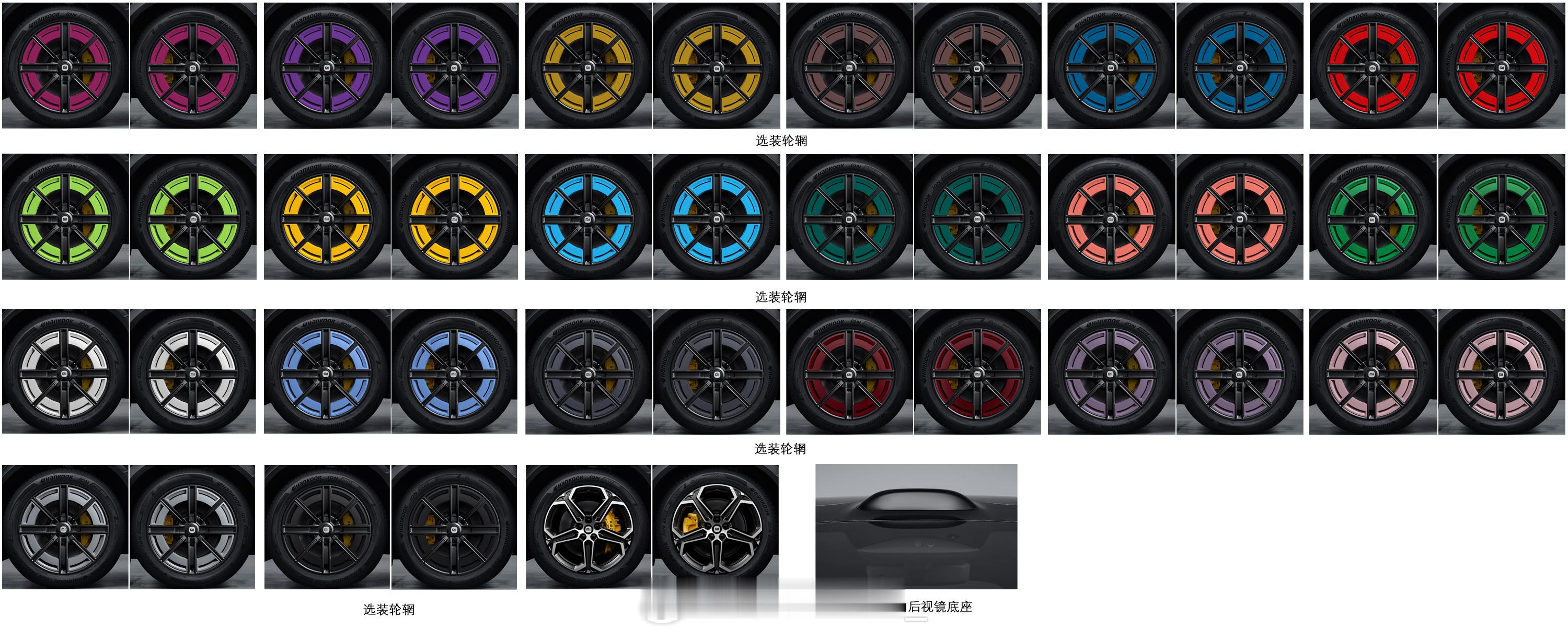 不过这次解锁了更多的套装,比如轮毂、大灯套件、碳纤维后视镜、后扰流板、机盖套件和鸭尾都支持选装,这次也新增20英寸米型轮毂,最高 21英寸,也是 245/275 混合胎宽。