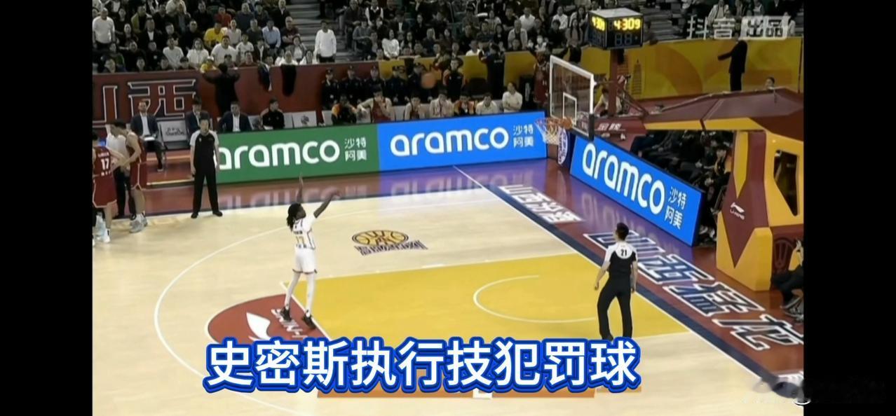 史密斯执行技术犯规罚球不进,21号裁判示意史密斯继续执行1次罚球罚进。此时裁判台及时发现罚球执行人错误,上篮犯规的2次罚球应该由替换王浩然上场的球员执行。按CBA联赛规则,发现罚球人错误的两种情况:一、罚球中途发现错误,已执行的罚球结果有效,取消余下罚球权利,由对方发球;二、罚球已执行完发现错误,罚球结果无效,并由对方发球。本场比赛属于第一种情况,深圳队已罚中1分有效,取消余下1次罚球权利,并由山西发边线球。