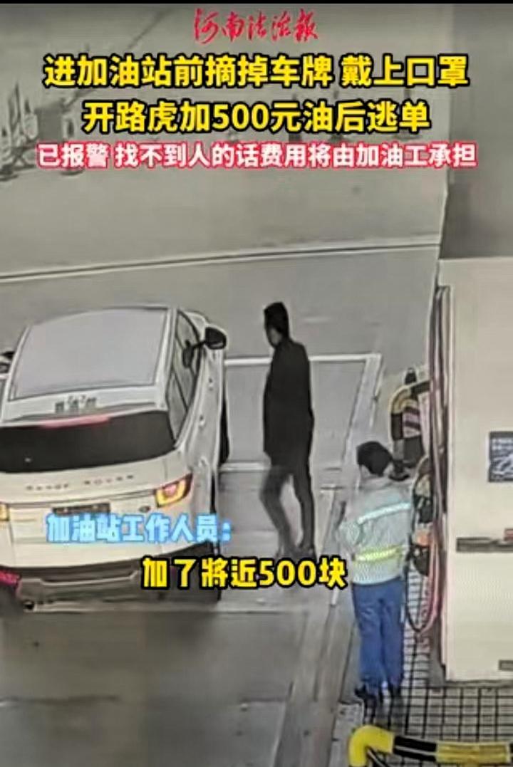 江西,一男子开着路虎去加油站加油,加满后将近500元,要付钱时,该男子以回车上取手机为由,趁工作人员整理设备不备,迅速上车关门,车辆随即加速驶离。工作人员发现后追赶不及,加油站方面已第一时间报警。