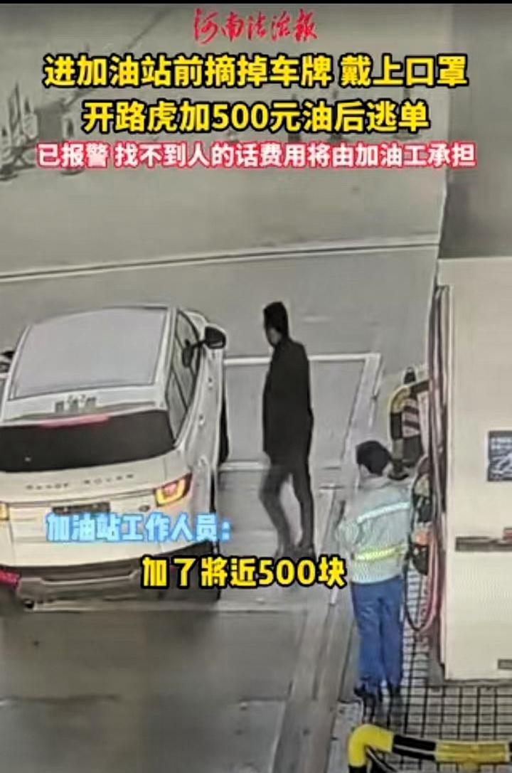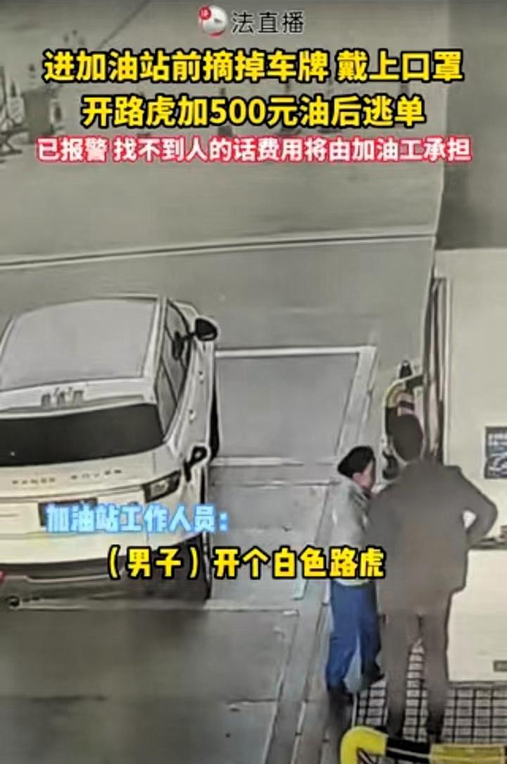 江西,一男子开着路虎去加油站加油,加满后将近500元,要付钱时,该男子以回车上拿手机付款为由,离开加油机位置,趁工作人员整理加油设备不备,迅速上车,随后车辆一脚油门驶离,工作人员追赶不及,油费未能收回。