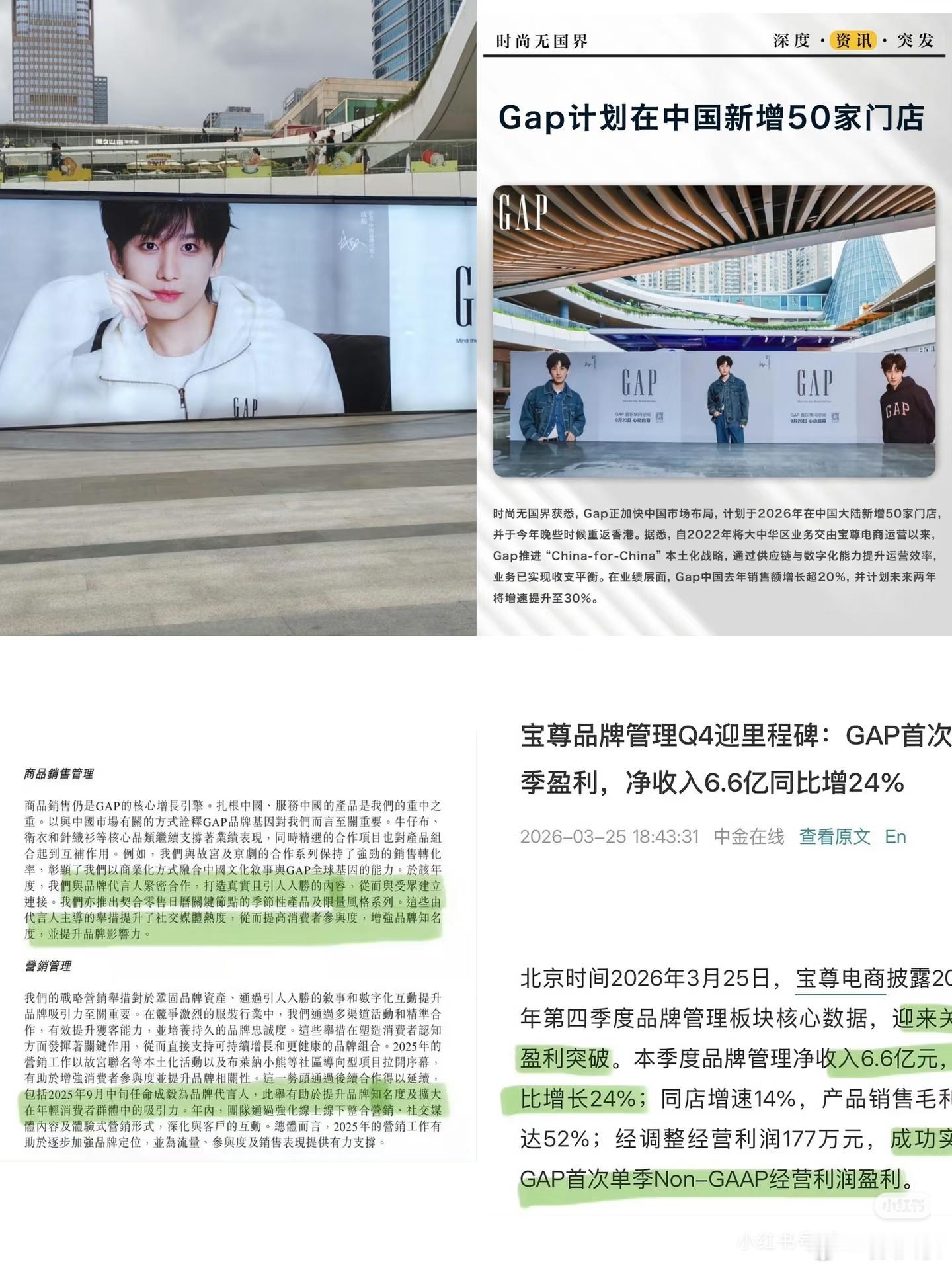 成毅续约Gap仅首日销售额突破5000万,GAP发布财报肯定官宣成毅后首次单季盈