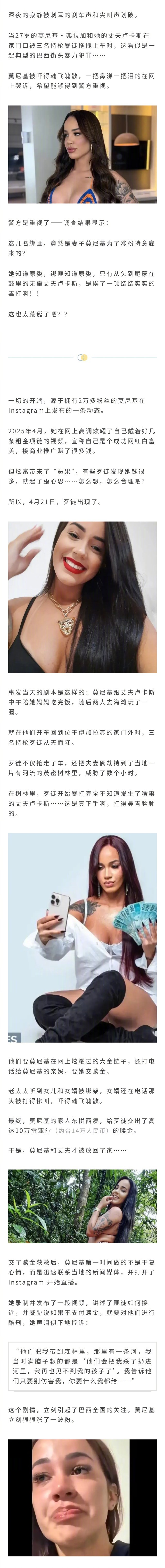 巴西网红为了涨粉自导自演,联合前男友带黑帮分子策划绑架案,但赎金是真交,丈夫也是被结结实实暴打一顿?