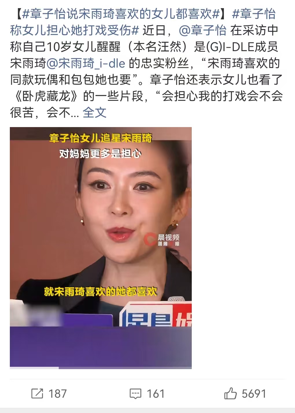 采访中,章子怡罕见主动谈及女儿醒醒,语气里满是温柔与宠溺,直言醒醒如今是歌手宋雨琦的忠实粉丝,喜欢程度堪比普通追星女孩——宋雨琦喜欢什么,醒醒就跟着喜欢什么,一举一动都在模仿,那份纯粹的热爱,和我们普通人追星时的模样一模一样,毫无违和感。