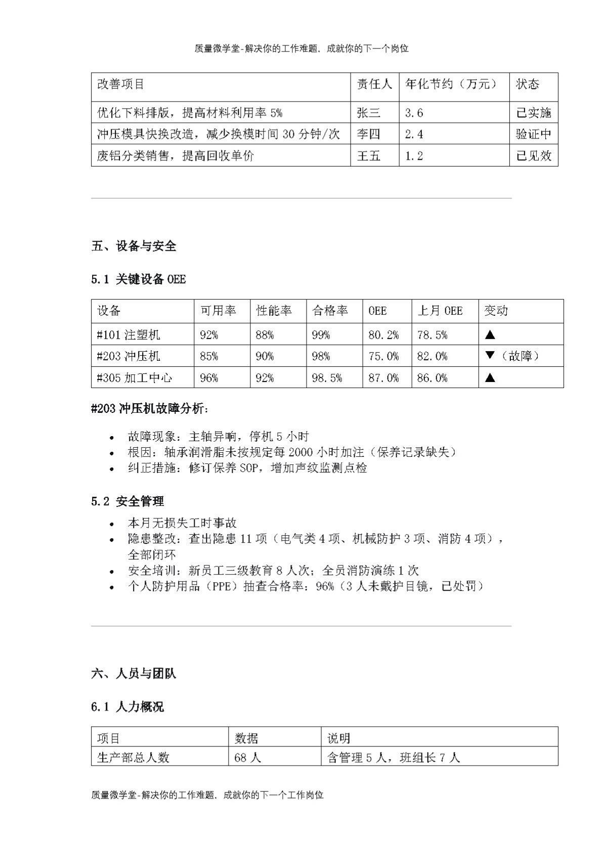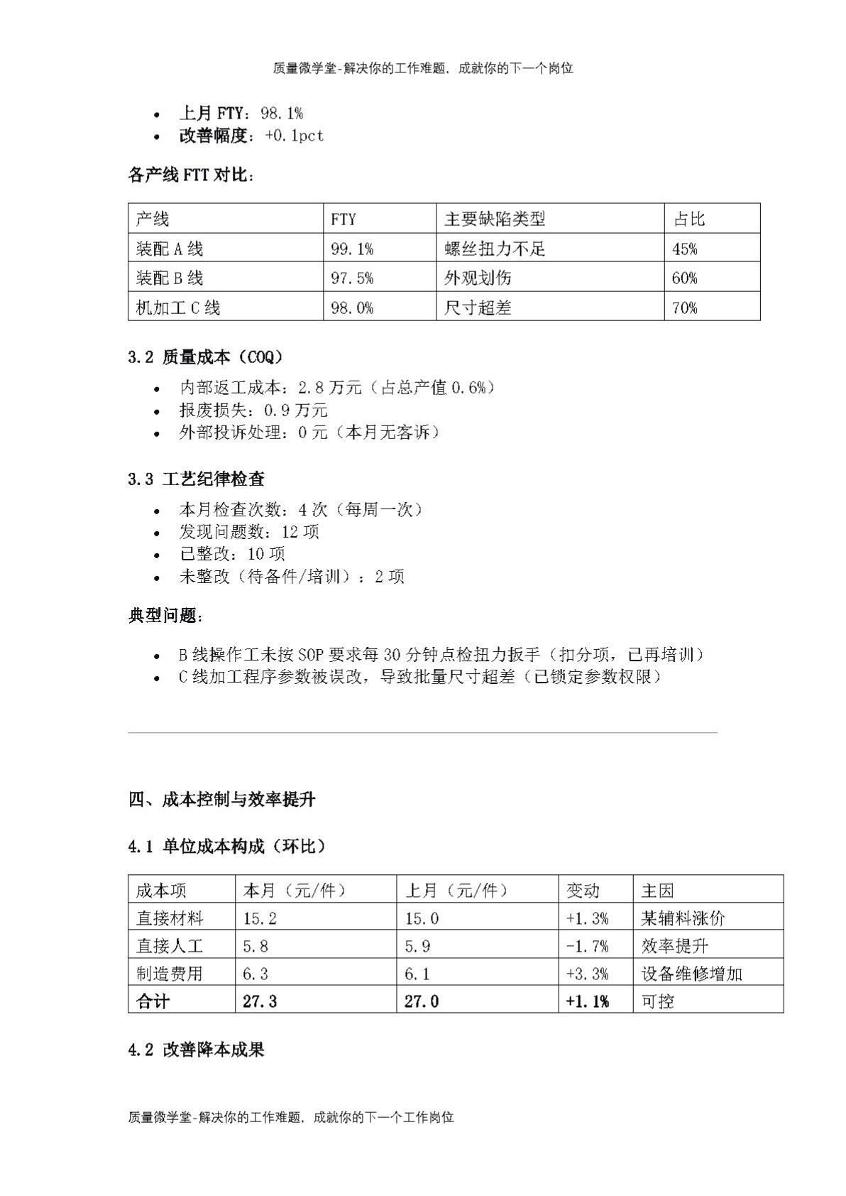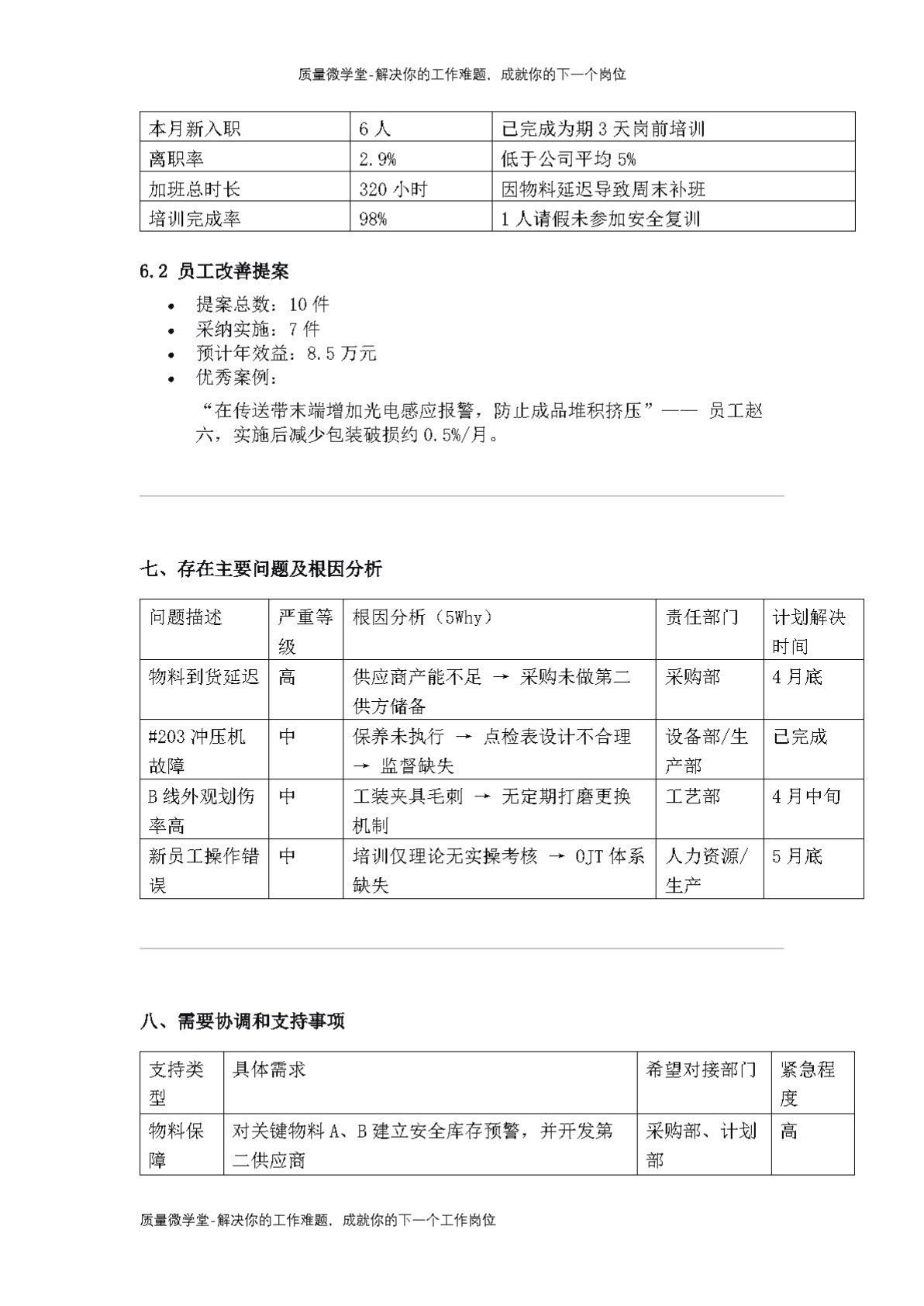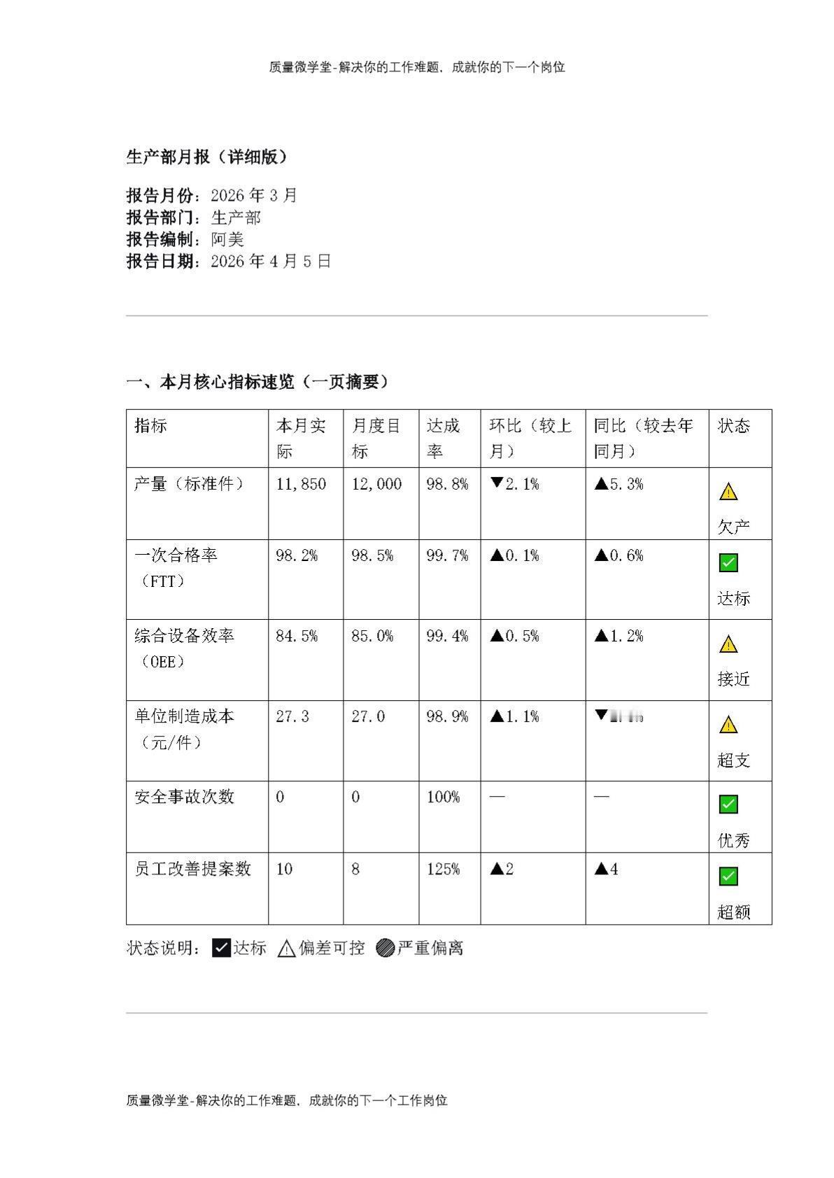 生产部月报:产量低于目标150件,FTY 98.2%,如何复盘?知识点总结 精益