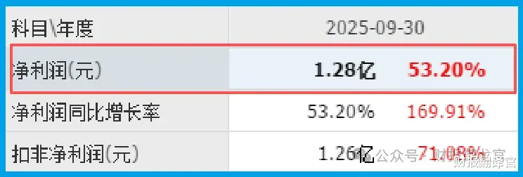 这份财报的首页就显示,公司前三季度净利润1.28亿元,同比增长53.20%。