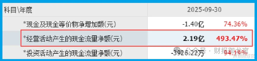 这个数字不仅同比增长了惊人的493.47%,更是净利润的1.7倍以上。这表明公司的产品销售后,回款速度和质量极高,经营质量非常扎实。