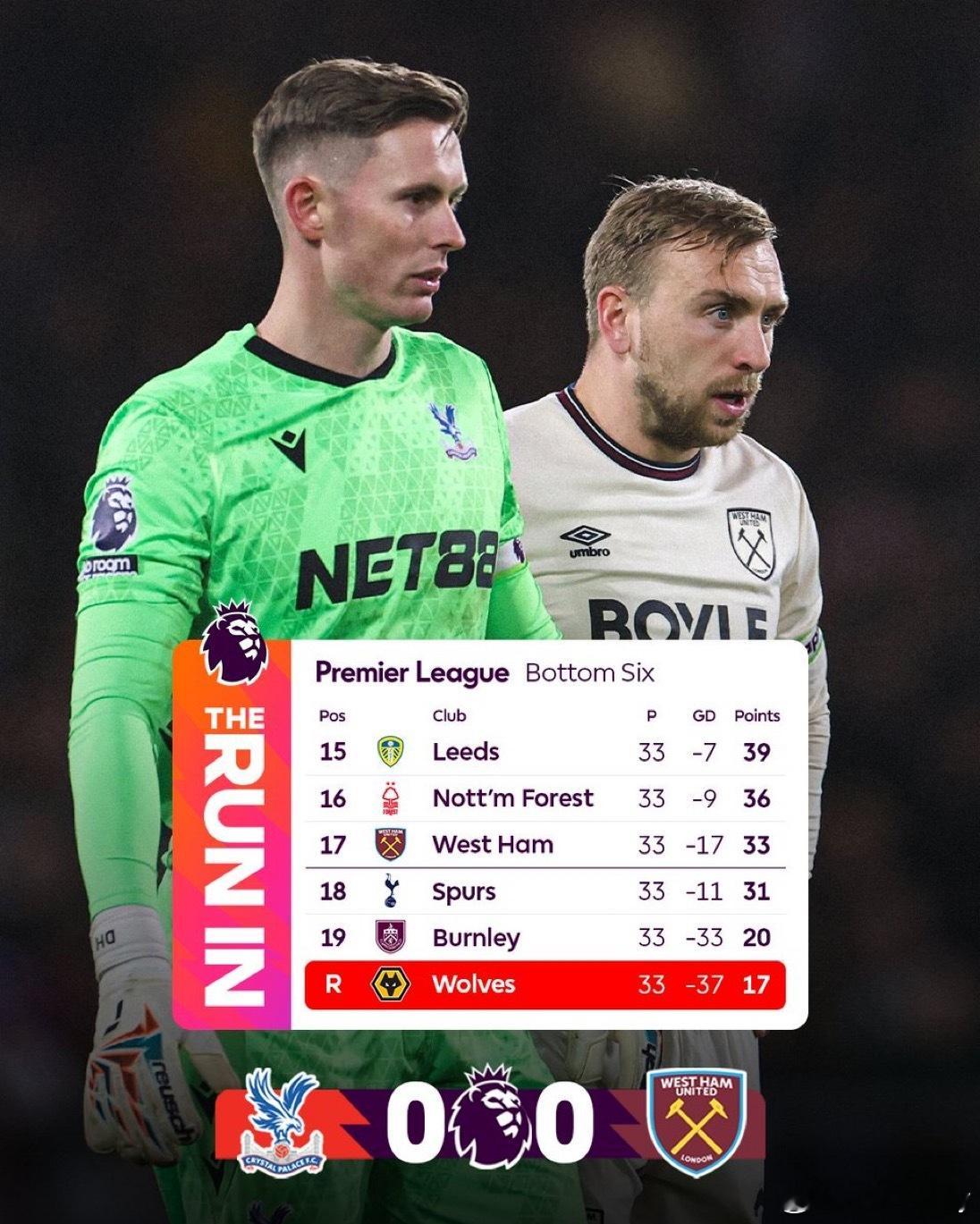 Morning☀️随着塞尔赫斯特公园0比0收尾,狼队提前五轮降级,而森林、铁锤、热刺依然存在保级压力。目前西汉姆降级概率38.03%,热刺则升至57.17%被布莱顿绝平,凯文·丹索持续在社媒遭受了严重的种族主义辱骂,热刺也力挺了球员。这场其实热刺表现不错,但现在时间紧任务重,球队已无任何容错空间。虽然麦迪逊经历八个月的伤缺后终于回归,但距离恢复竞技状态可能还需要一点时间。当然看看最后几轮赛程,西汉姆2分的领先优势并不算多。德泽尔比需要做的就是激发全员斗志和信心,全力以赴最后的比赛。