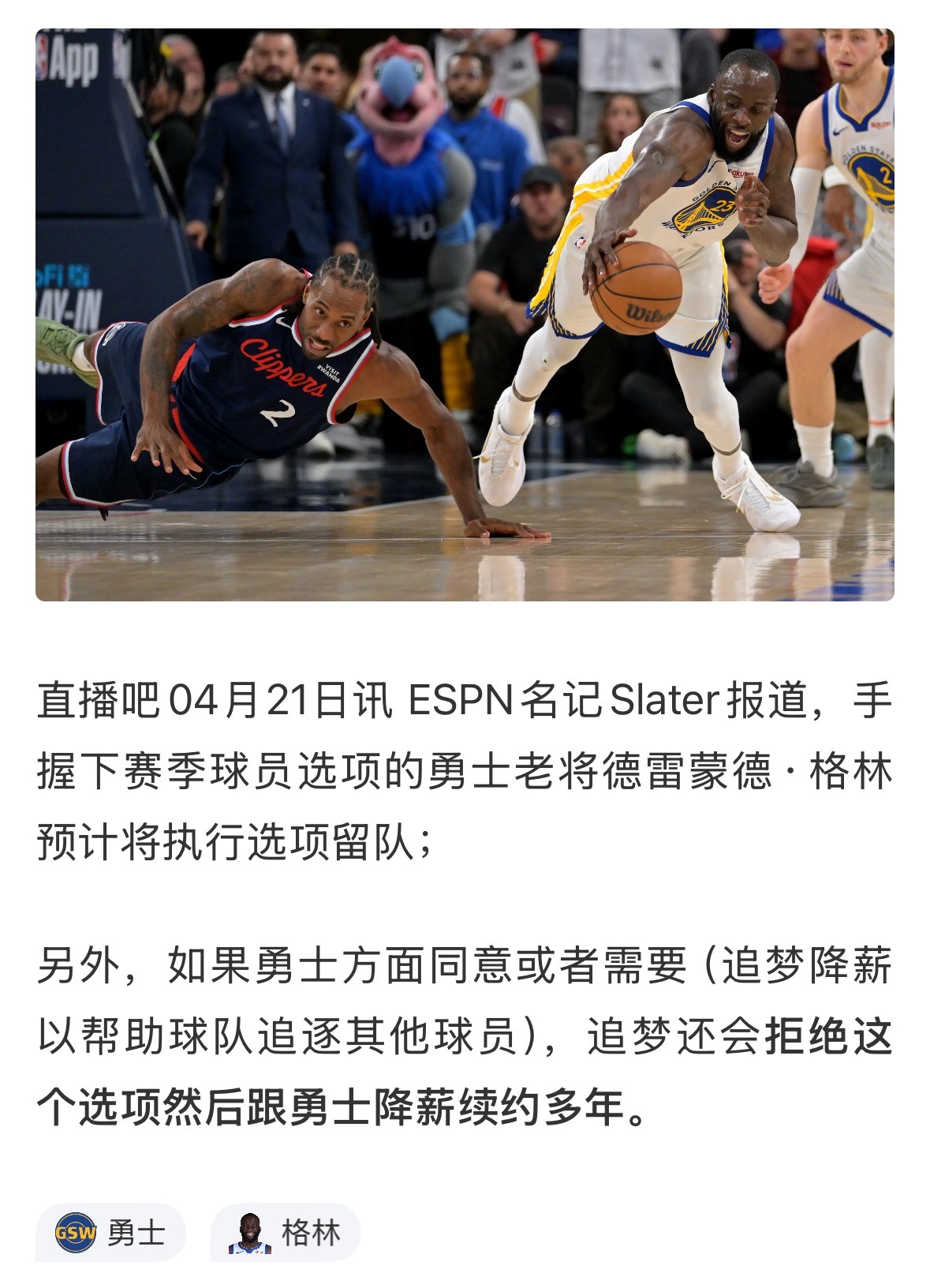 你们觉得年薪降到多少合适 格林愿意降薪留队