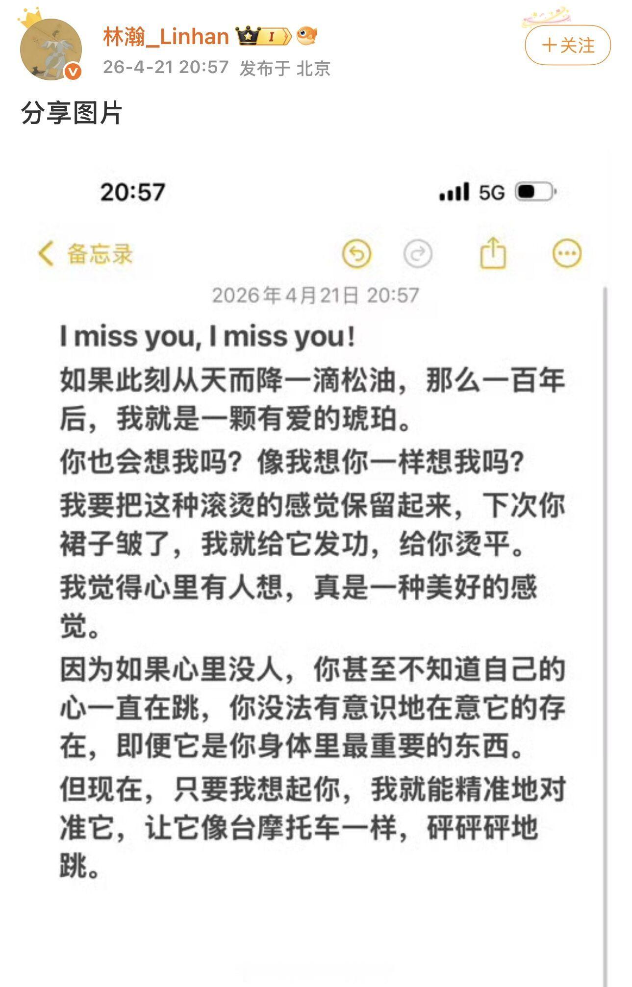 王勇又给晚晚写诗了:I miss you!I miss you!继“雷婉莹你是我
