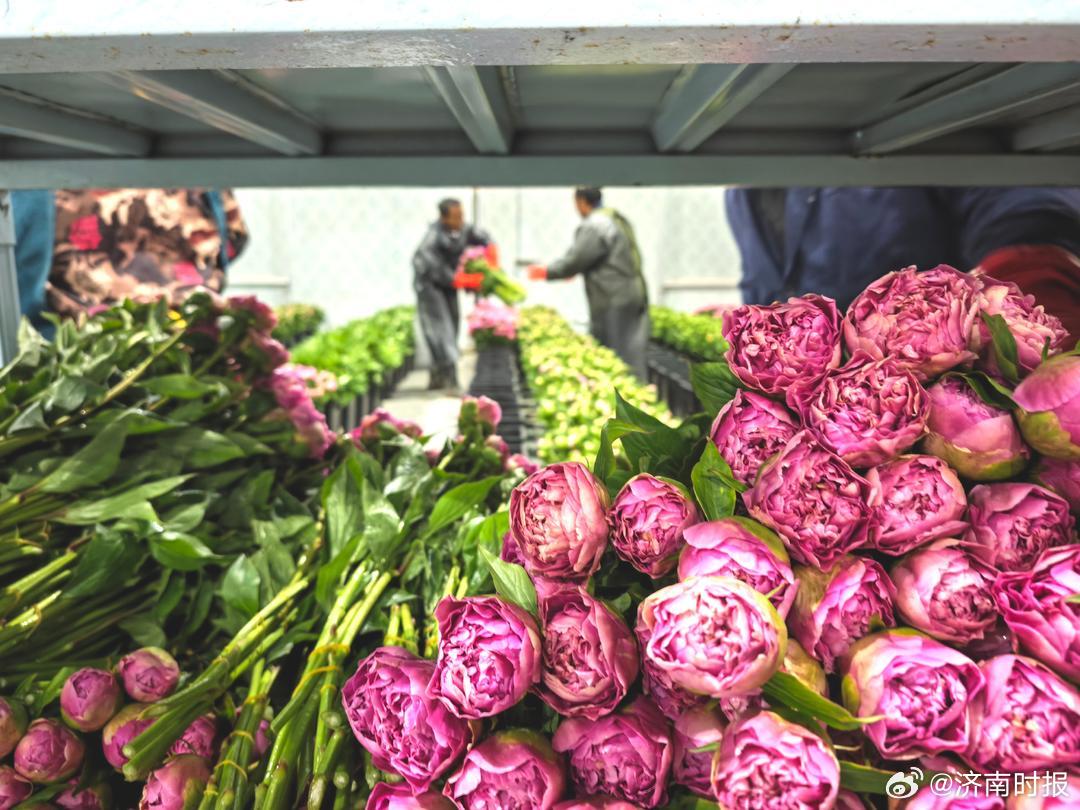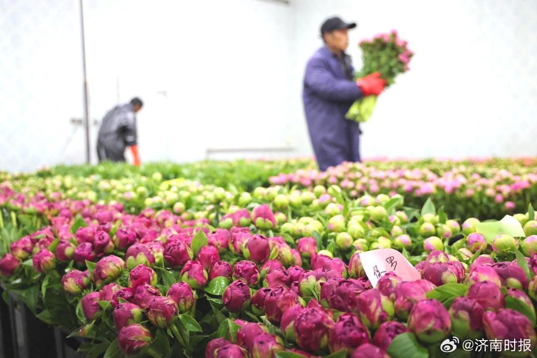 【#每卖10枝芍药就有6枝产在菏泽#】4月20日,山东盛世芍花智慧农业有限公司车间内,一派繁忙景象。3℃的恒温车间里,工人们正熟练地对芍药鲜切花进行分级、修枝、打包。车间外是大片的芍药、牡丹种植基地,销售人员在田间直播带货,要不了多久,一束束芍药将从这里送到消费者手中。