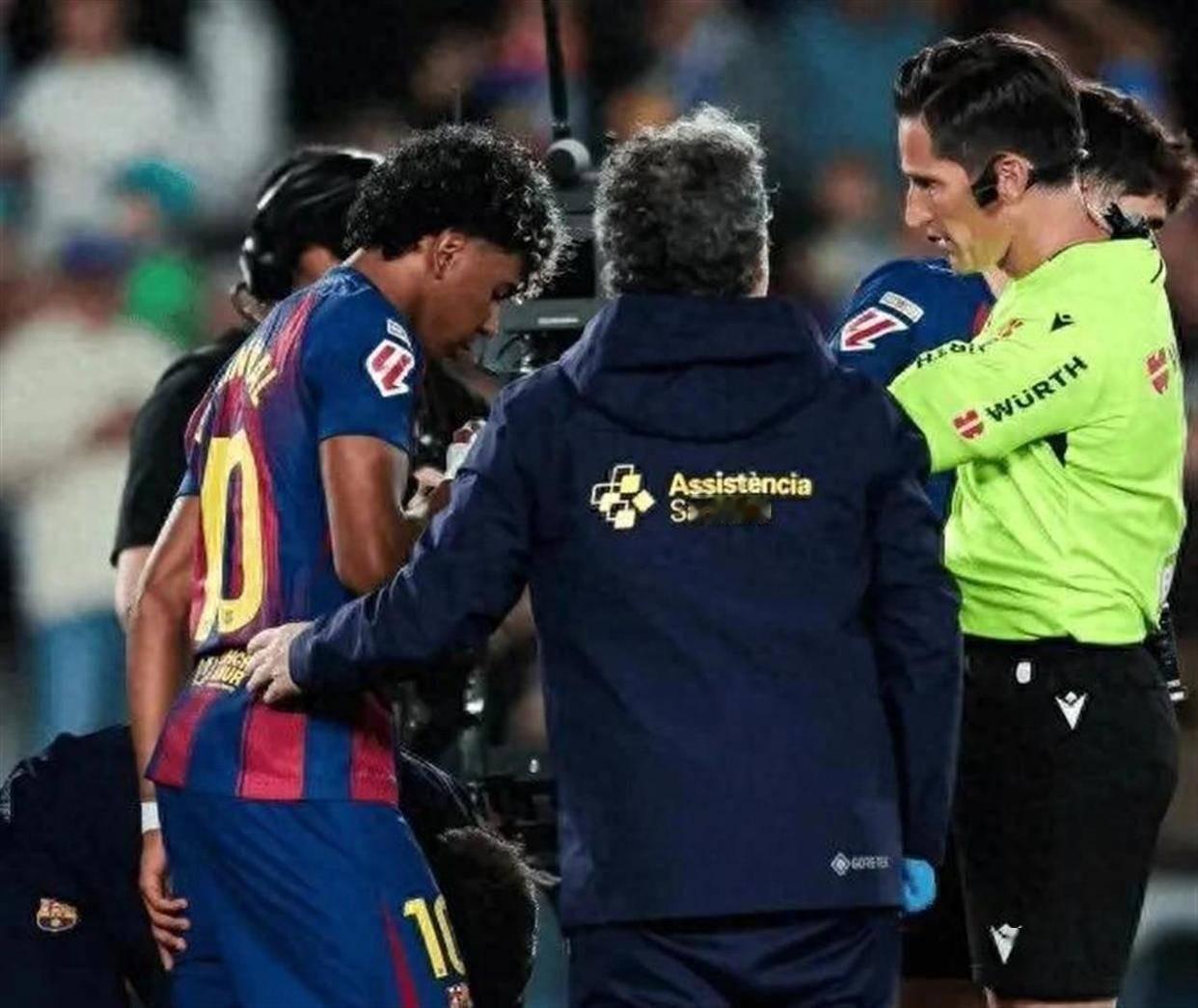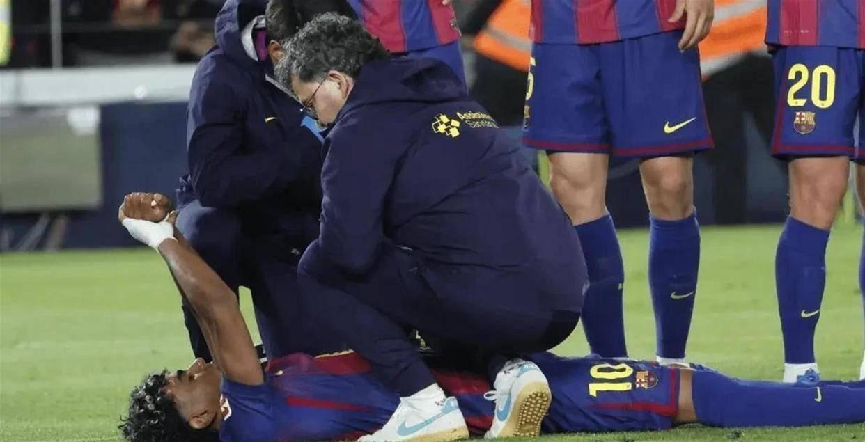 亚马尔伤情,赛季报销。伤退时刻,罚进点球后立刻示意左大腿后侧不适,第41分钟被换下。确诊左侧腘绳肌(腿筋)撕裂。休战时间预计 5 周 → 赛季报销。无缘西甲剩余5轮。